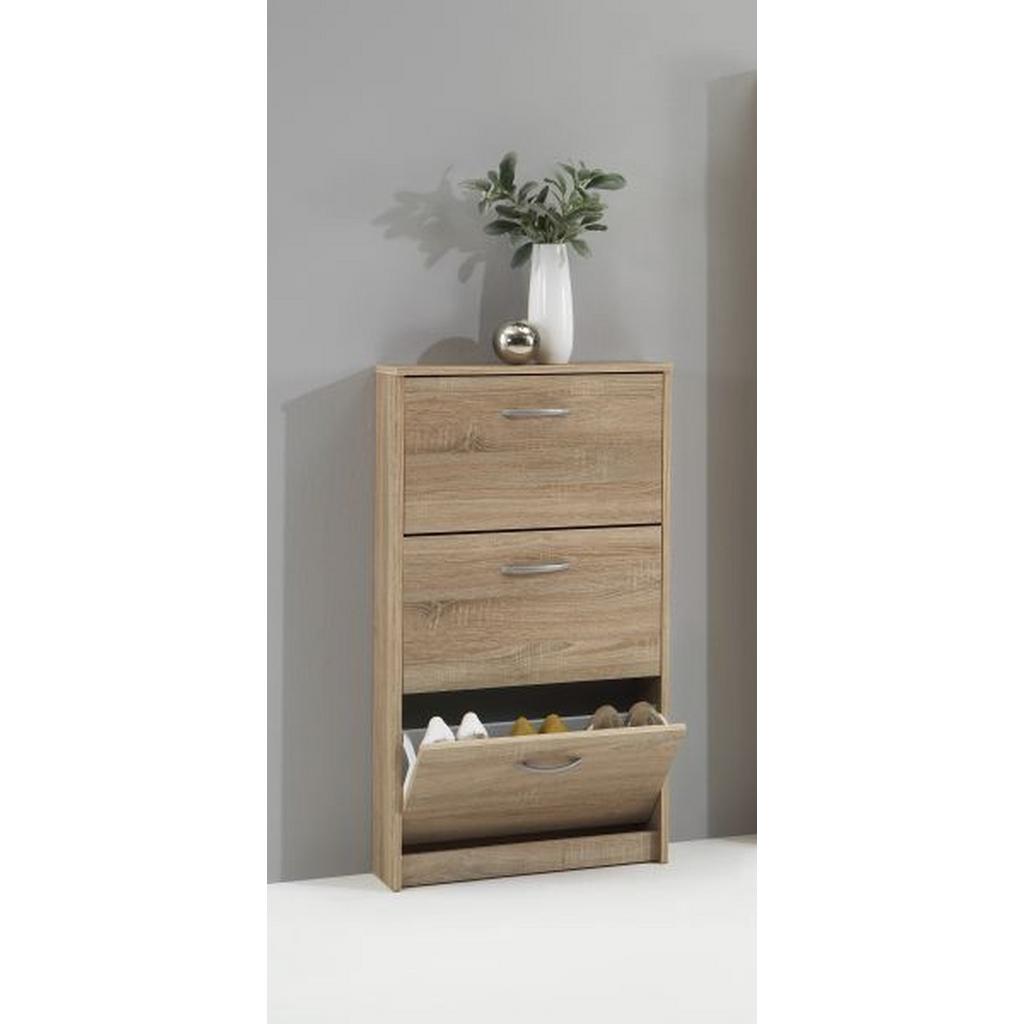 Tento artikel je k dispozícií iba ONLINE. Botník s 3 výklopmi v dekore dub Sonoma, zapadne do každého interiéru. Schováte v ňom približne 6 párov topánok.