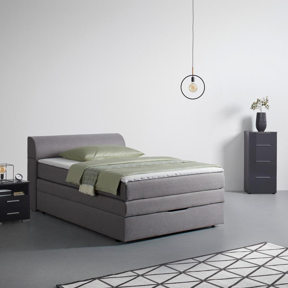 Táto pohodlná posteľ vám ponúka prvotriedny pocit príjemnej atmosféry a kráľovské spanie. Boxspring posteľ FLEXI II zaujme predovšetkým svojím moderným vzhľadom, pretože poťah sivej farby, perfektne harmonizuje s čistým dizajnom, je odolný proti oderu a proti vyblednutiu, a tiež sa na ňom netvoria žmolky. Nízke a zaoblené čalúnené čelo, o ktoré si môžete pohodlne oprieť hlavu, a asi 3,5 cm vysoké štvorcové nohy čiernej farby pôsobia ležérne a dotvárajú celkový dizajn. Ležanie na ploche s rozmermi približne 140 x 200 cm (Š x V) je veľmi pohodlné. Box je tvorený bonellovým pružinovým jadrom, tak isto, ako aj matrac so stupňom tvrdosti H3 – stredne tvrdý. Vrchný ochranný matrac, je tvorený z polyuretánovej peny a poťahu, ktorý je možné pomocou zipsu odňať a prať v práčke na 30 °C. Ďalším plus postele FLEXI II je sofistikovaný úložný priestor, ktorý nájdete v záhlaví postele aj pod pružinovým boxom. Posteľ, s celkovými rozmermi cca 144 x 96 x 227 cm (Š/V/H) má pohodlnú výšku ležania približne 65 cm a jej maximálna nosnosť je do 100 kg. Objavte ďalšie postele z kategórií