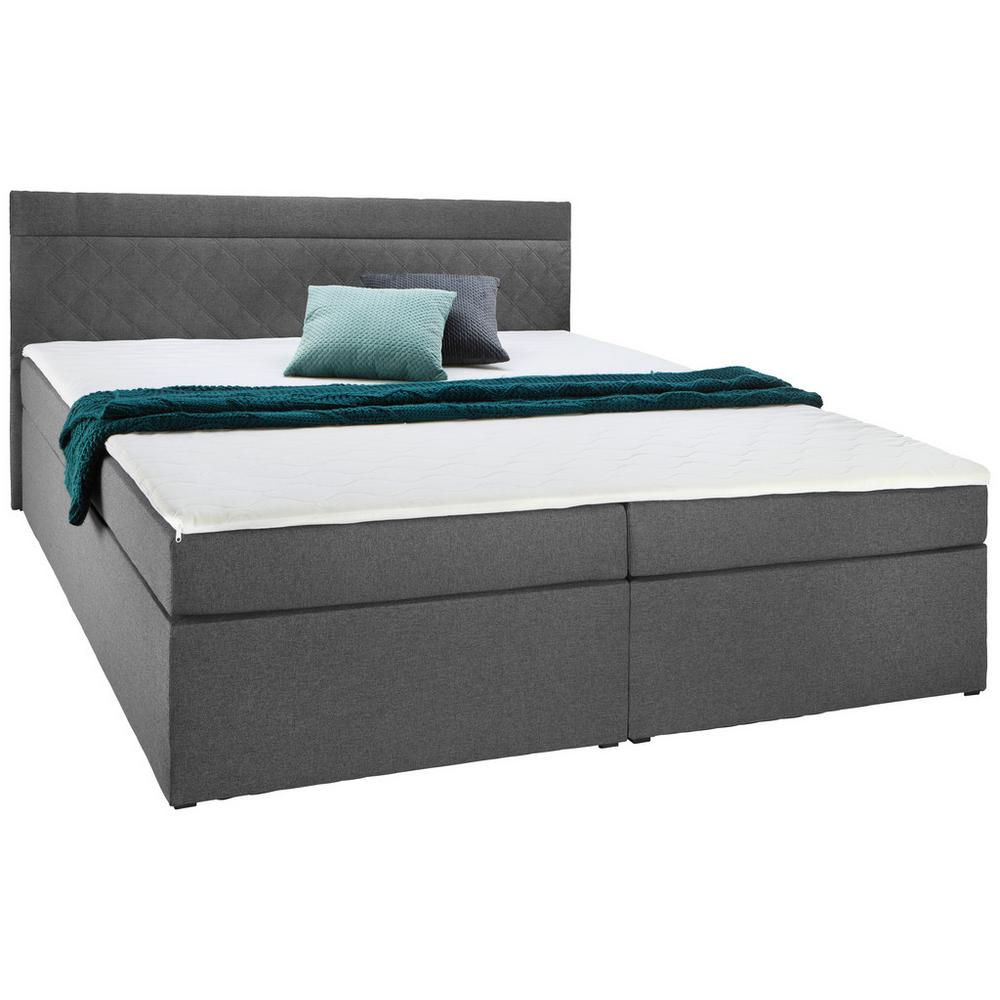 Tento výrobok je k dispozícii IBA ONLINE. Táto atraktívna tmavosivá boxspring posteľ poskytuje elegantný a pohodlný priestor na spanie pre váš domov. Lôžko s látkovým poťahom a štvorcovým čelom postele s decentnými švami je vybavené boxom a 2 matracami s bonelovým pružinovým jadrom. Vrchný ochranný topper s penovým jadrom zaisťuje optimálne pohodlie. Najdôležitejšie informácie: