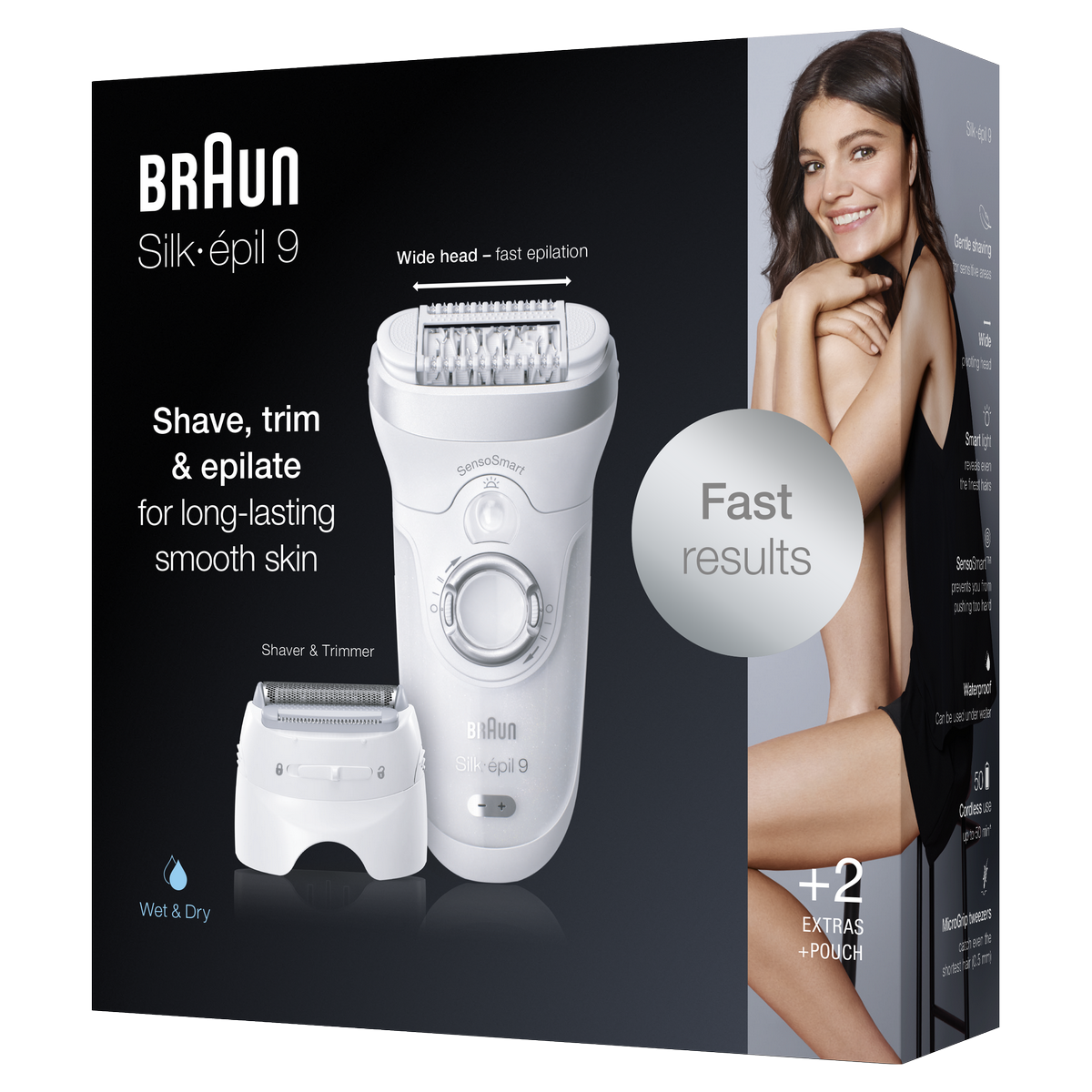 Epilátor Braun Silk-épil 9-705 so širokou hlavou pre extra rýchlu epiláciu. Užite si týždne trvajúci pocit hladkej pokožky ako zo salónu vďaka technológii pinziet Micro-Grip a o 40 % širšej hlave, ktorá odstraňuje chĺpky s dĺžkou iba 0,5 mm.Hlava holiaceho strojčeka a zastrihávací nadstavec poskytujú ďalšie možnosti na úpravu citlivých oblastí. Epilátor je navyše 100% vodeodolný, čo znamená, že sa môžete takmer bezbolestne epilovať vo vani či sprche.Plné nabitie za 1 hodinu pre 50 minút prevádzky.Obsah balenia: