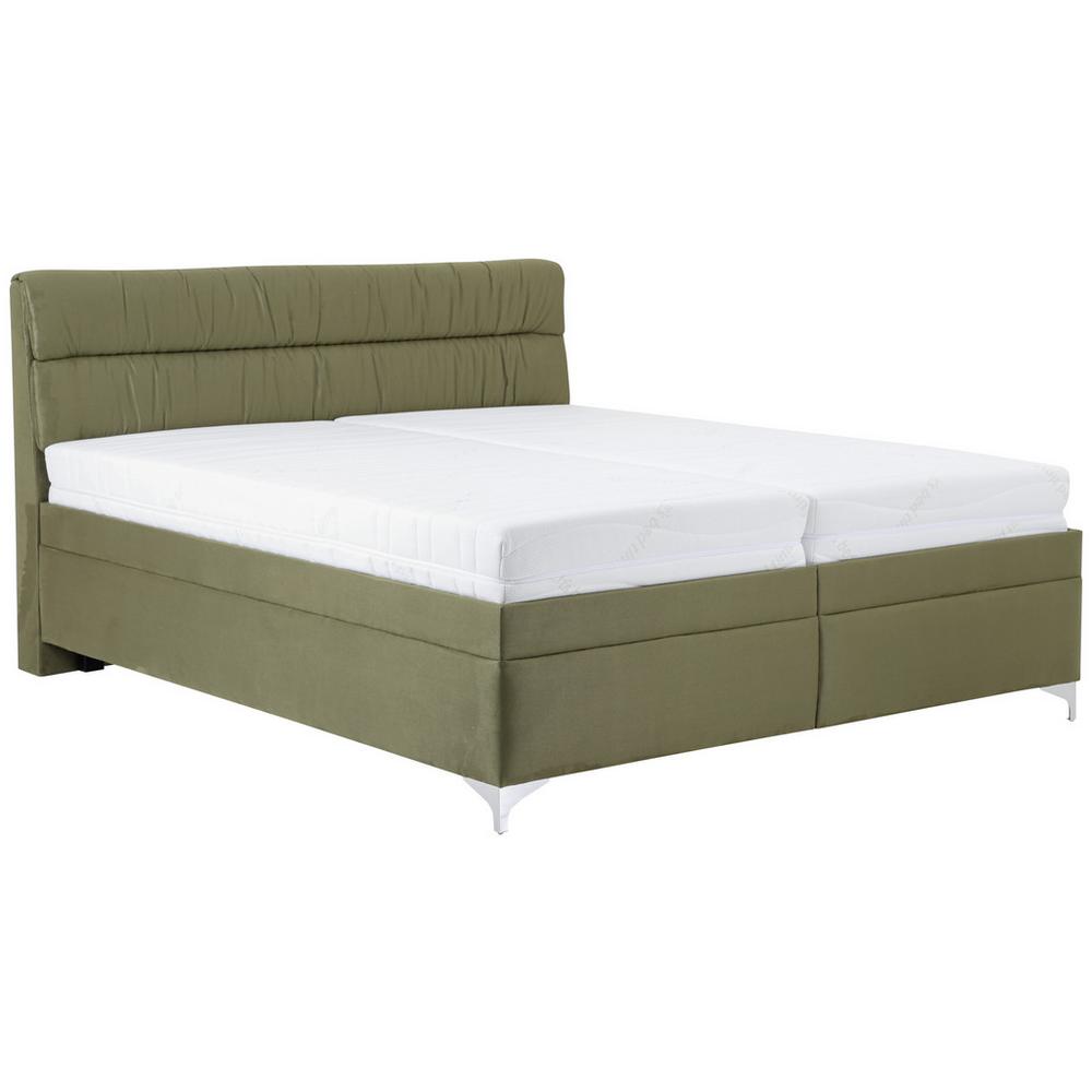 Čalúnená posteľ ALORA s látkovým poťahom olivovo zelenej farby ponúka útulné miesto na spanie na ploche s rozmerom približne 180 x 200 cm. Elegantný poťah a čalúnené čelo s pokrčeným vzhľadom možno ľahko kombinovať s viacerými štýlmi nábytku. Posteľ je postavená na štyroch kovových nožičkách. Rošty s 28 lamelami v duo puzdrách sú polohovateľné a poskytujú tiež manuálne nastavenie tuhosti v bedrovej oblasti. Posteľ disponuje tiež úložným priestorom, ktorý je prístupný zo strany nôh, po vyklopení roštov. Celkový rozmer postele ALORA je približne 186 x 110 x 218 cm (Š/V/H). Zariaďte si spálňu útulne a moderne s touto skvelou posteľou! Dostupná je vo viacerých farbách. Upozorňujeme, že matrace nie sú súčasťou postele.