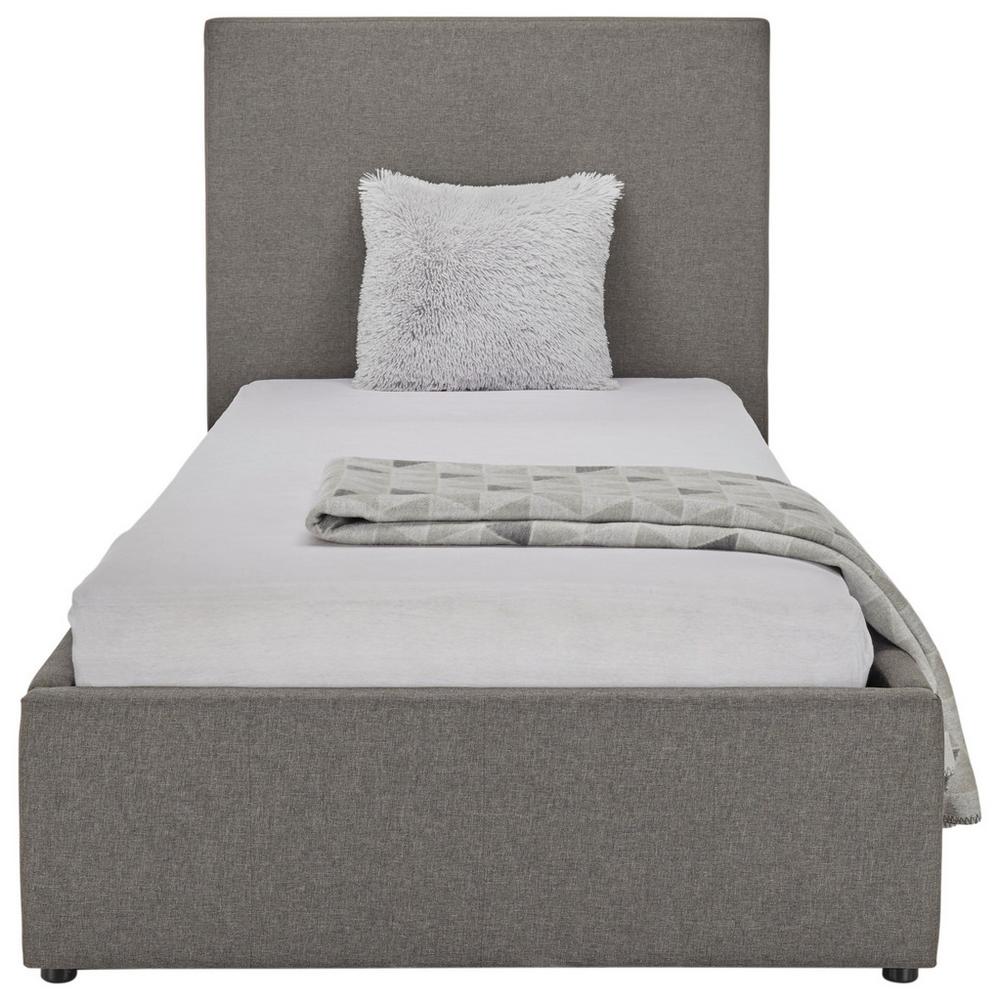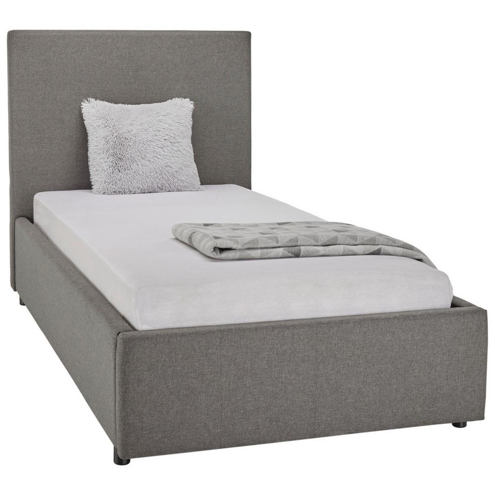 Objavte túto jednolôžkovú posteľ pre individualistov! Čalúnená posteľ BILLY tmavosivej farby, s plochou na ležanie cca 90 x 200 cm (Š x D), spája nadčasovú eleganciu s praktickým úložným priestorom. Integrovaný úložný box v tomto jednolôžku umožňuje optimálne využitie priestoru pod posteľou. Ponúka prehľadné uloženie posteľnej bielizne, vankúšov a iných nevyhnutných vecí. Súčasťou postele je aj lamelový rošt s lepenými drevenými lamelami, ktoré zabezpečujú optimálnu oporu matraca. Rošt sa vyklápa pomocou plynových piestov. Rám postele má výšku okolo 35 cm. Čalúnená posteľ BILLY je premyslené riešenie pre ľudí, ktorí sa nechcú vzdať štýlu a pohodlia. Matrac nie je súčasťou postele. Pozrite si aj naše produkty z kategórie: jednolôžkové postele s rozmermi 90×200
