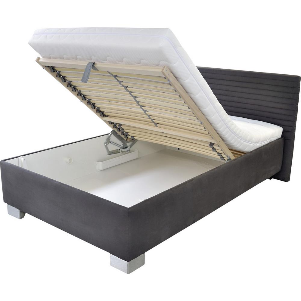 Čalúnená posteľ COMO antracitovej farby je štýlovým prvkom interiérového dizajnu, ktorý zaručuje najvyššie pohodlie počas spánku. Plocha na spanie, približne 120 x 200 cm poskytuje pohodlné miesto na odpočinok pre jednu alebo dve osoby, s max. nosnosťou 150 kg. Jeho nespornou výhodou je 14 cm vysoký obojstranný matrac so stupňom tvrdosti H3, s ktorým vzniká komfortná výška ležania asi 51 cm. Má jadro z polyuretánovej peny a odnímateľný poťah na zips, takže je možné ho prať v práčke. Poťah je vyrobený z mikrovlákna, čo dáva posteli žiarivý a útulný vzhľad. Matrac je umiestnený na nastaviteľnom rošte z lepených drevených lamiel a má tri komfortné zóny. Vďaka vystužujúcemu stredovému pásu poskytuje rošt vynikajúcu stabilitu a tlmenie nárazov. Čelo postele je zaujímavo zdobené a priam vás nabáda, aby ste sa oň opreli a príjemne si odpočinuli. Takto budete môcť čítať knihy alebo sledovať svoje obľúbené seriály pred zaspaním v pohodlnej polohe. Toto lôžko, s celkovým rozmerom cca 142 x 97 x 214 cm (Š/V/H), poskytuje ideálne podmienky na relaxáciu, aby ste sa ráno mohli prebudiť plný pozitívnej energie vo svojej novej posteli!