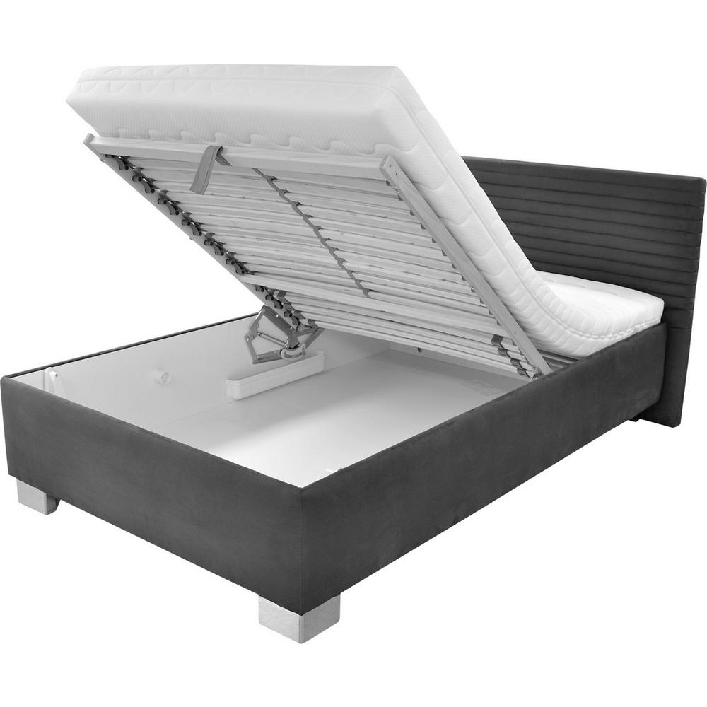 Čalúnená posteľ COMO sivej farby je štýlovým prvkom interiérového dizajnu, ktorý zaručuje najvyššie pohodlie počas spánku. Plocha na spanie, približne 120 x 200 cm poskytuje pohodlné miesto na odpočinok pre jednu alebo dve osoby, s max. nosnosťou 150 kg. Jeho nespornou výhodou je 14 cm vysoký obojstranný matrac so stupňom tvrdosti H3, s ktorým vzniká komfortná výška ležania asi 51 cm. Má jadro z polyuretánovej peny a odnímateľný poťah na zips, takže je možné ho prať v práčke. Poťah je vyrobený z mikrovlákna, čo dáva posteli žiarivý a útulný vzhľad. Matrac je umiestnený na nastaviteľnom rošte z lepených drevených lamiel a má tri komfortné zóny. Vďaka vystužujúcemu stredovému pásu poskytuje rošt vynikajúcu stabilitu a tlmenie nárazov. Čelo postele je zaujímavo zdobené a priam vás nabáda, aby ste sa oň opreli a príjemne si odpočinuli. Takto budete môcť čítať knihy alebo sledovať svoje obľúbené seriály pred zaspaním v pohodlnej polohe. Ďalším plus postele COMO je úložný priestor. Toto lôžko, s celkovým rozmerom cca 142 x 97 x 214 cm (Š/V/H), poskytuje ideálne podmienky na relaxáciu, aby ste sa ráno mohli prebudiť plný pozit&