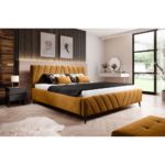 Tento výrobok je dostupný IBA ONLINE. Očarujúca čalúnená posteľ MELLI hneď na prvý pohľad upúta svojím jedinečným vzhľadom s velúrovým poťahom okrovo žltej farby a ozdobným prešívaním na vysokom záhlaví a nožnej …