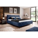 Tento výrobok je dostupný IBA ONLINE. Očarujúca čalúnená posteľ MELLI hneď na prvý pohľad upúta svojím jedinečným vzhľadom s velúrovým poťahom tmavomodrej farby a ozdobným prešívaním na vysokom záhlaví a nožnej …