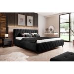 Tento výrobok je dostupný IBA ONLINE. Očarujúca čalúnená posteľ MELLI hneď na prvý pohľad upúta svojím jedinečným vzhľadom s velúrovým poťahom čiernej farby a ozdobným prešívaním na vysokom záhlaví a nožnej …