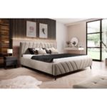 Tento výrobok je dostupný IBA ONLINE. Očarujúca čalúnená posteľ MELLI hneď na prvý pohľad upúta svojím jedinečným vzhľadom s béžovým velúrovým poťahom a ozdobným prešívaním na vysokom záhlaví a nožnej časti. Čierne kónické nožičky, vysoké …