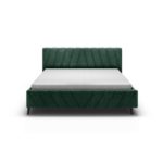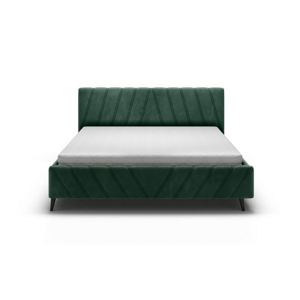Tento výrobok je dostupný IBA ONLINE. Očarujúca čalúnená posteľ MELLI hneď na prvý pohľad upúta svojím jedinečným vzhľadom s tmavozeleným velúrovým poťahom a ozdobným prešívaním na vysokom záhlaví a nožnej časti. Čierne kónické nožičky, vysoké asi 15 cm, dotvárajú celkový vzhľad. Ich výška tiež umožňuje lepšie upratovanie pod nábytkom. S celkovými rozmermi približne 198 x 106 x 222 cm (Š / V / H) a plochou lôžka cca 180 x 200 cm presvedčí táto posteľ vizuálne aj funkčne. Korpus postele sa dodáva bez roštu, ale je prispôsobený na reguláciou výšky pre rošt a matrac. Výška rámu postele je asi 46 cm, výška ležania teda bude závisieť od nastavenia výšky roštu a výšky zvoleného matraca. Čalúnená posteľ MELLI sa v našom internetovom obchode ponúka v bohatom výbere rozmerov a farieb. Tento produkt vlastní certifikát FSC, materiál na výrobu bol použitý z ekologického lesného hospodárstva. Upozornenia: Dodáva sa bez matraca, roštu, úložného priestoru a vyobrazených lôžkovín. Vhodné príslušenstvo nájdete v našom internetovom obchode. Tento tovar sa nenachád