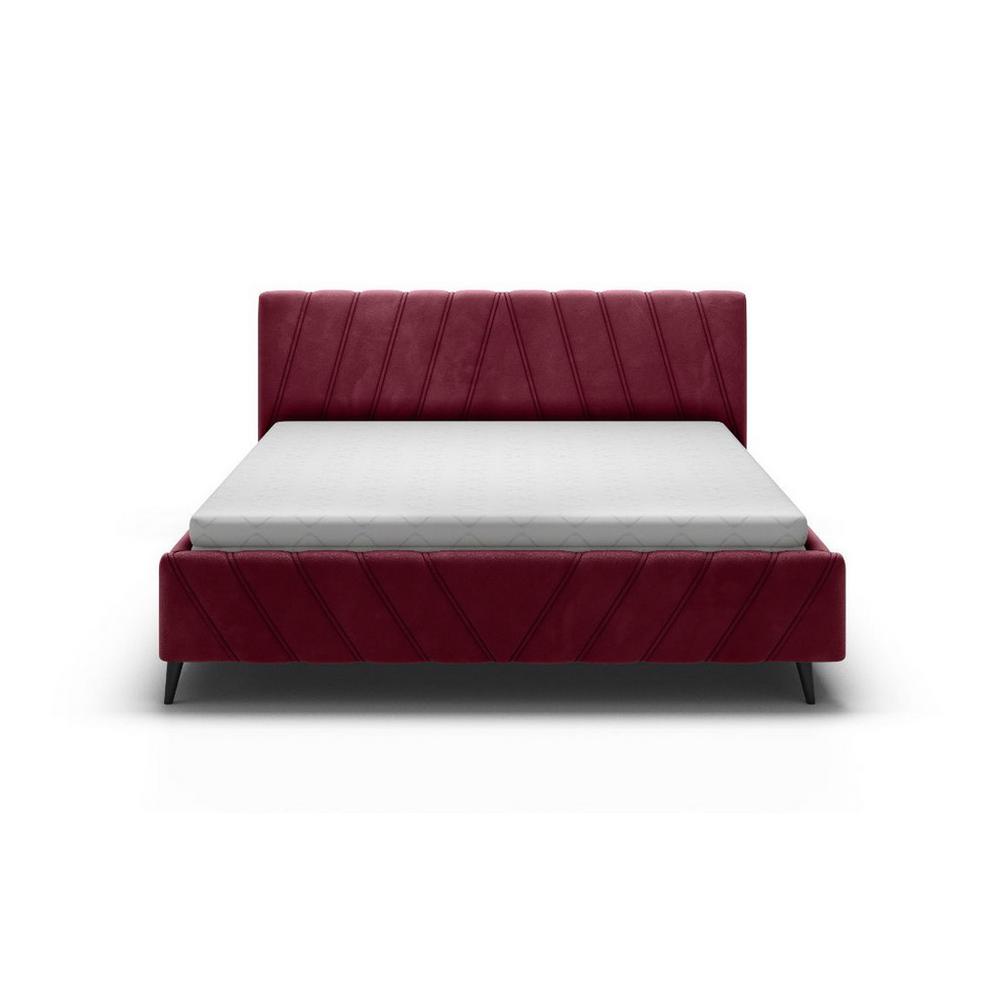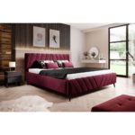 Tento výrobok je dostupný IBA ONLINE. Očarujúca čalúnená posteľ MELLI hneď na prvý pohľad upúta svojím jedinečným vzhľadom s bordovým velúrovým poťahom a ozdobným prešívaním na vysokom záhlaví a nožnej časti. Čierne kónické nožičky, vysoké …