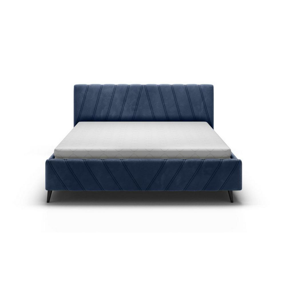 Tento výrobok je dostupný IBA ONLINE. Očarujúca čalúnená posteľ MELLI hneď na prvý pohľad upúta svojím jedinečným vzhľadom s tmavomodrým velúrovým poťahom a ozdobným prešívaním na vysokom záhlaví a nožnej časti. Čierne kónické nožičky, vysoké asi 15 cm, dotvárajú celkový dizajn. Ich výška tiež umožňuje lepšie upratovanie pod nábytkom. S celkovými rozmermi približne 178 x 106 x 222 cm (Š / V / H) a plochou lôžka cca 160 x 200 cm presvedčí táto posteľ vizuálne aj funkčne. Súčasťou je aj rošt s nastaviteľnou výškou. Výška rámu postele je asi 46 cm, výška ležania teda bude závisieť od nastavenia výšky roštu a výšky zvoleného matraca. Čalúnená posteľ MELLI sa v našom internetovom obchode ponúka v bohatom výbere rozmerov a farieb. Tento produkt vlastní certifikát FSC, materiál na výrobu bol použitý z ekologického lesného hospodárstva. Upozornenia: Dodáva sa bez matraca, úložného priestoru a vyobrazených lôžkovín. Vhodné príslušenstvo nájdete v našom internetovom obchode. Tento tovar sa nenachádza v našich predajniach. Objednať si ho môžete iba cez e-shop