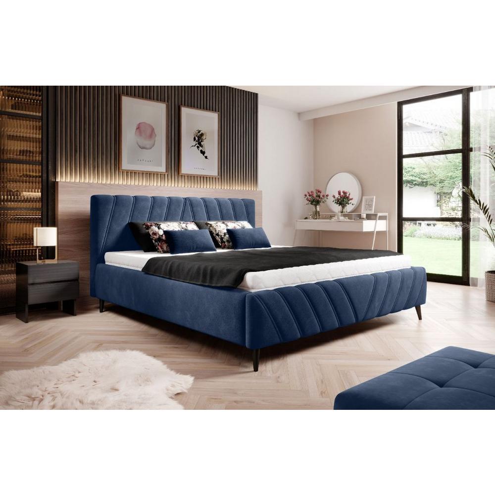 Tento výrobok je dostupný IBA ONLINE. Očarujúca čalúnená posteľ MELLI hneď na prvý pohľad upúta svojím jedinečným vzhľadom s tmavomodrým velúrovým poťahom a ozdobným prešívaním na vysokom záhlaví a nožnej …
