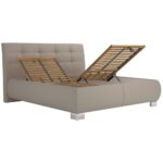 Čalúnená posteľ v krémovom látkovom poťahu s prešívaným záhlavím, nohy v chrómovej farbe s v. 10 cm, rošt s 28 lamelami a 3 zónami ležania,otváranie pomocou plyn. piestov, výška lôžka 44 cm, bez matracov, PL: cca 160/200 cm, Š/V/H: cca 173/119/225 cm