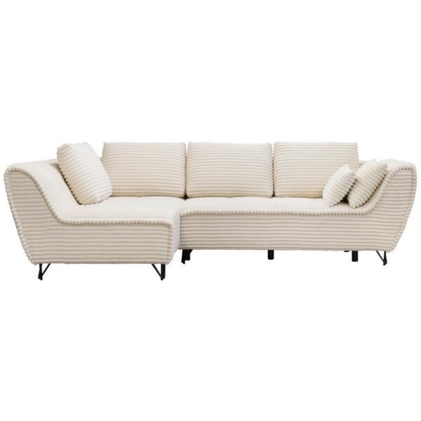 Čalúnená posteľ v krémovom látkovom poťahu s prešívaným záhlavím, nohy v chrómovej farbe s v. 10 cm, rošt s 28 lamelami a 3 zónami ležania,otváranie pomocou plyn. piestov, výška lôžka 44 cm, bez matracov, PL: cca 160/200 cm, Š/V/H: cca …