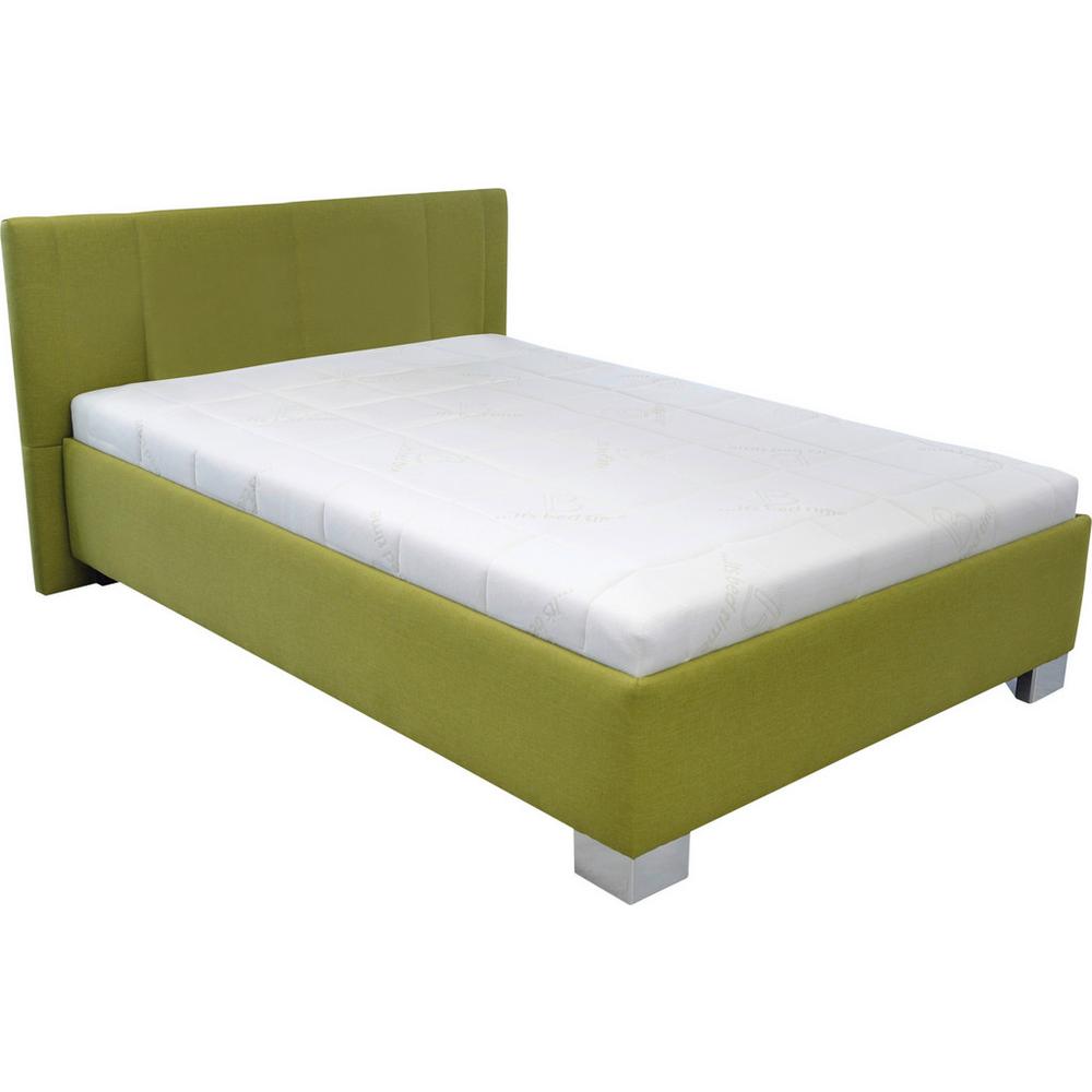 Čalúnená posteľ v zelenej látke, s pevne čalúneným matracom, s lamelovým roštom, s nohami farby chrómu, výška lahu: 51 cm, PL:140x200cm, s max.nosnosťou 105kg, Š/V/H:162/97/214cm