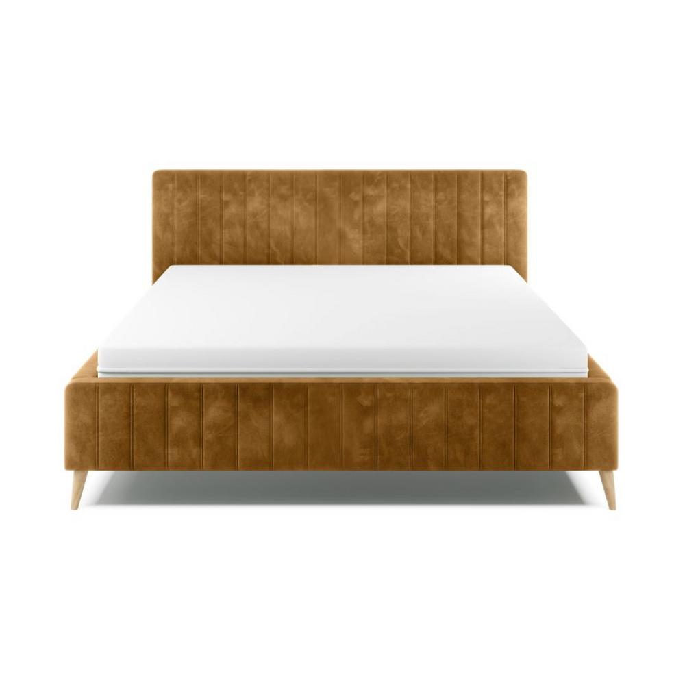 Tento výrobok je dostupný IBA ONLINE. Táto krásne čalúnená posteľ sa stane oázou pokoja, do ktorej sa budete každý večer radi vracať! Posteľ TAMINA vás hneď na prvý pohľad očarí svojím vysokým záhlavím a poťahom s ozdobným prešívaním. Ten bol vyrobený zo syntetických vlákien okrovo žltej farby a harmonicky ho dopĺňajú kónické, drevené nožičky s výškou asi 14 cm. S celkovými rozmermi približne 178 x 106 x 222 cm (Š / V / H) a plochou lôžka cca 160 x 200 cm presvedčí táto posteľ vizuálne aj funkčne. Výška rámu postele je asi 46 cm, výška ležania teda bude závisieť od výšky zvoleného matraca a roštu, ktorý bude možné v tejto posteli výškovo nastavovať. Čalúnená posteľ TAMINA sa v našom internetovom obchode ponúka v bohatom výbere rozmerov a farieb. K dispozícii sú tiež varianty s roštom, alebo aj s úložným priestorom a roštom. Vyberte si tú svoju! Tento produkt vlastní certifikát FSC, materiál na výrobu bol použitý z ekologického lesného hospodárstva. Objavte v našom internetovom obchode aj ostatné
