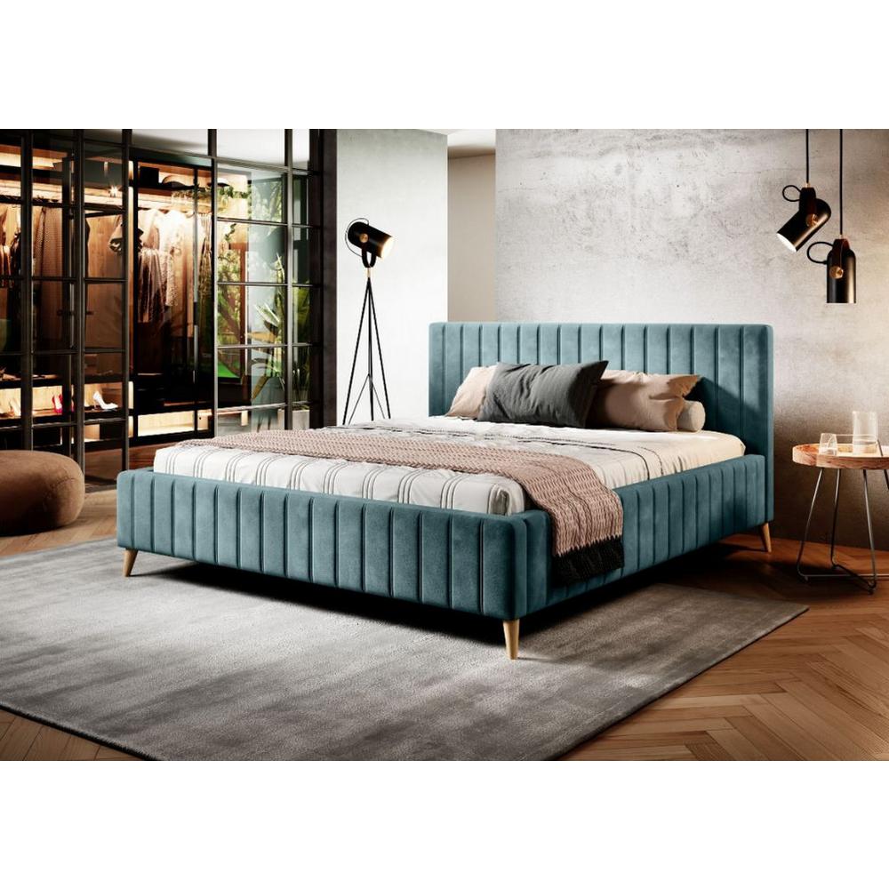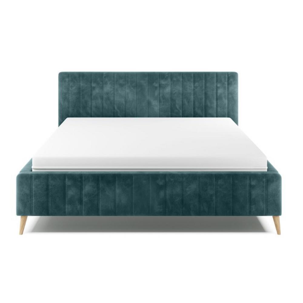 Tento výrobok je dostupný IBA ONLINE. Táto krásne čalúnená posteľ sa stane oázou pokoja, do ktorej sa budete každý večer radi vracať! Posteľ TAMINA vás hneď na prvý pohľad očarí svojím vysokým záhlavím a poťahom s ozdobným prešívaním. Ten bol vyrobený zo syntetických vlákien tyrkysovo-modrej farby a harmonicky ho dopĺňajú kónické, drevené nožičky s výškou asi 14 cm. S celkovými rozmermi približne 178 x 106 x 222 cm (Š / V / H) a plochou lôžka cca 160 x 200 cm presvedčí táto posteľ vizuálne aj funkčne. Výška rámu postele je asi 46 cm, výška ležania teda bude závisieť od výšky zvoleného matraca a roštu, ktorý bude možné v tejto posteli výškovo nastavovať. Čalúnená posteľ TAMINA sa v našom internetovom obchode ponúka v bohatom výbere rozmerov a farieb. K dispozícii sú tiež varianty s roštom, alebo aj s úložným priestorom a roštom. Vyberte si tú svoju! Tento produkt vlastní certifikát FSC, materiál na výrobu bol použitý z ekologického lesného hospodárstva. Objavte v našom internetovom obchode aj ostatné