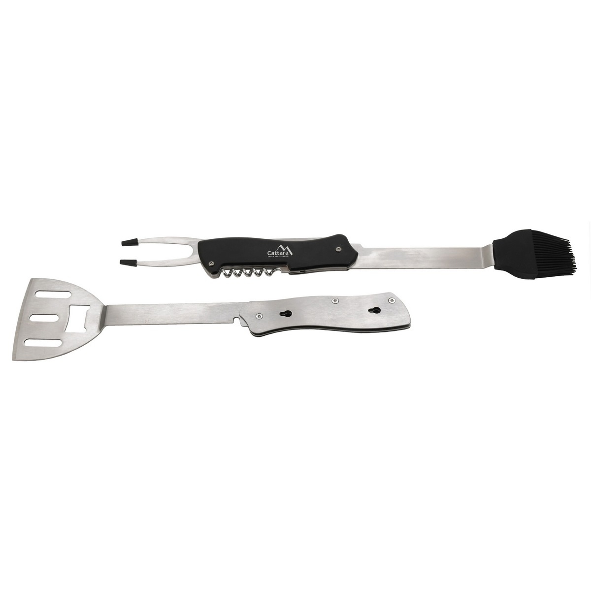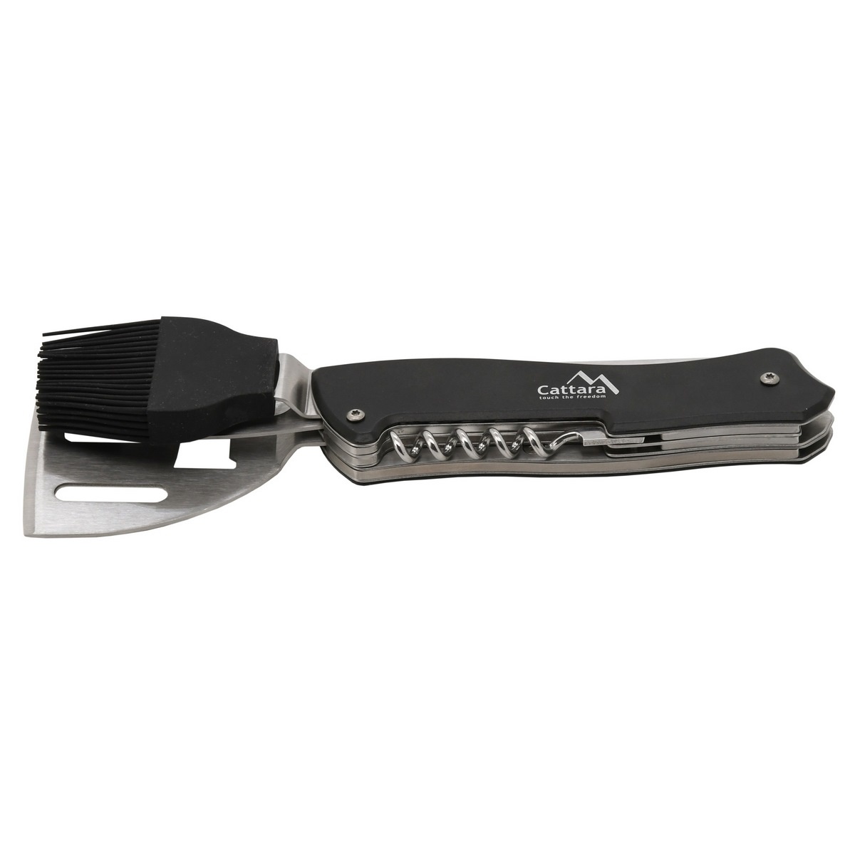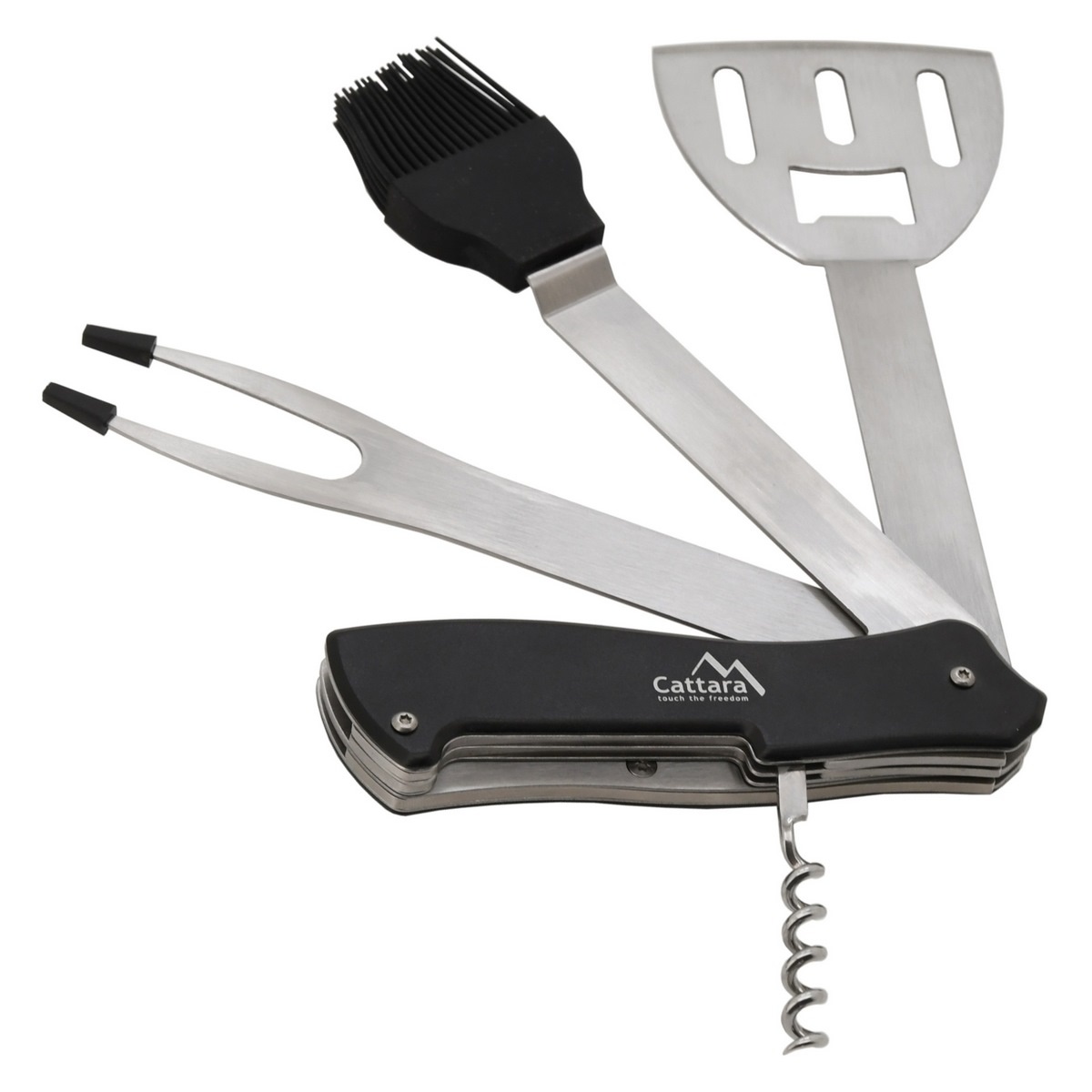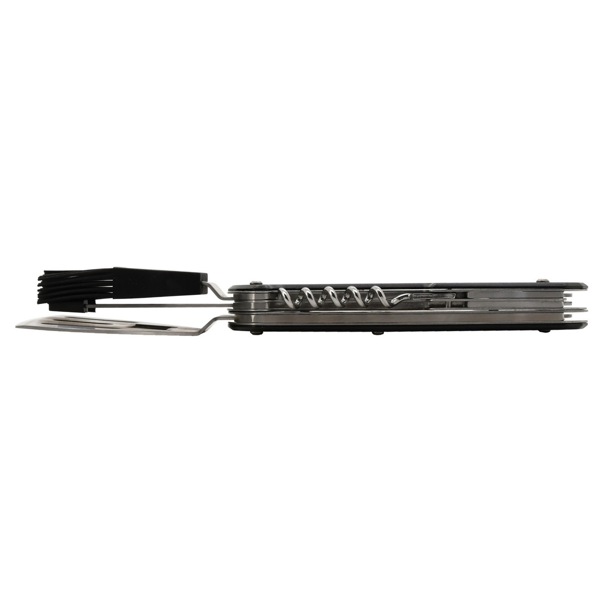 Toto kvalitné náradie je veľmi praktický pomocník pri grilovaní. Nástroj je opatrený obracačkou, otváračom na korkové štuple, otváračom na zátky fliaš, vidlicou a mašlovačkou. Možno ho používať vcelku alebo rozdeliť na dva nástroje. Nájde uplatnenie pri kempovaní, inde v prírode, ale aj doma pri grilovaní. Je zhotovené z kvalitnej ocele, rukoväť je v úchopovej časti vybavená čiernym obložením pre pohodlnejší úchop.