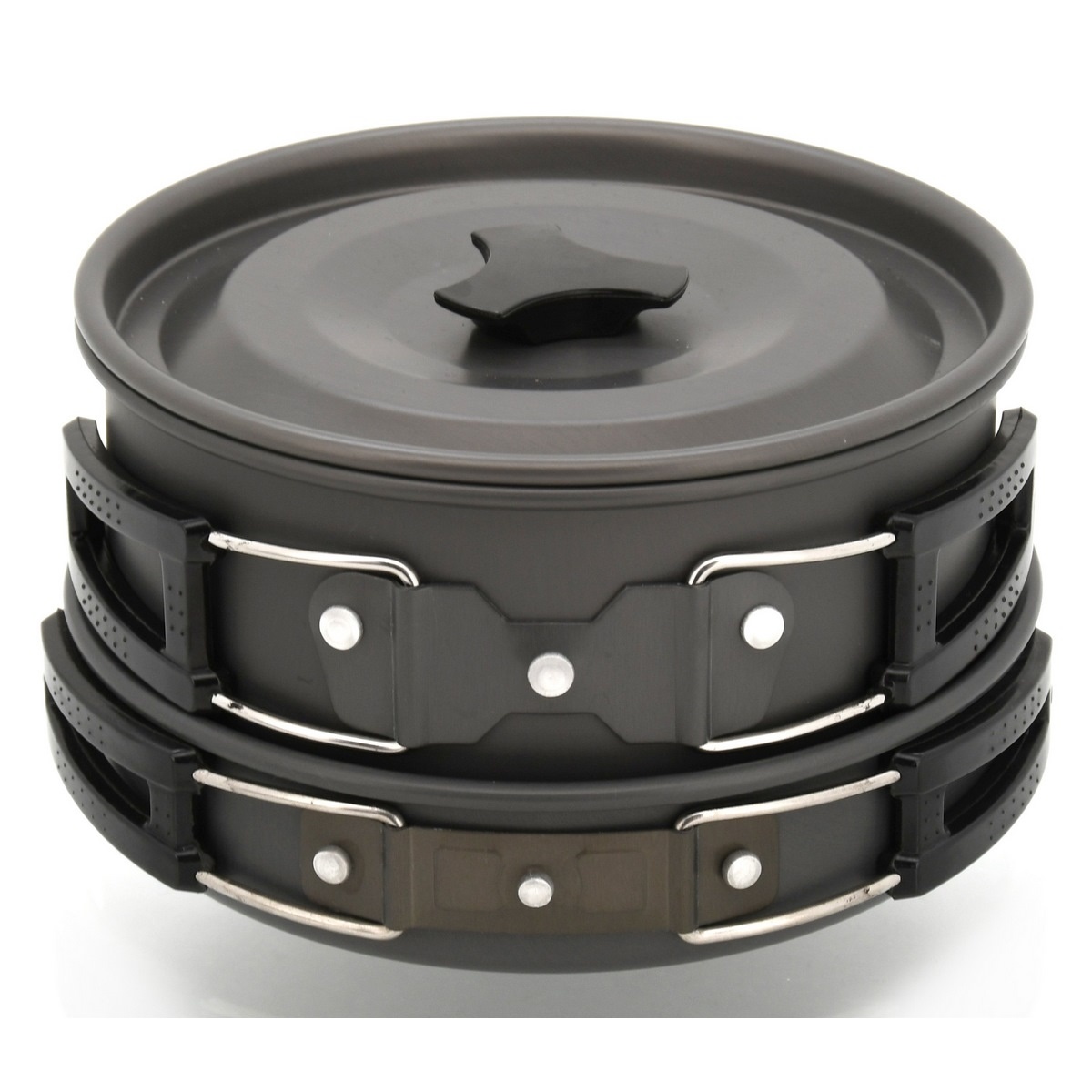 Hľadáte kvalitnú a ľahkú sadu riadu, ktorú môžete použiť pri kempovaní a aj na cestách? Táto je tvorená panvičkou, kotlíkom, kanvicou a viečkom. Všetko vybavenie je opatrené sklápacím držiakom, zakončeným plastovou rukoväťou pre uľahčenú manipuláciu. Jednotlivé časti sady sú rozmerovo presne odstupňované a dajú sa tak zložiť dohromady, čím ušetria veľa miesta. Navyše je všetko uložené v praktickej sieťovanej taške.Technické parametre: