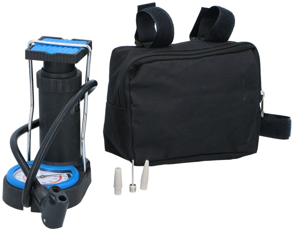 Cestovná nožná pumpa Dunlop je skvelý pomocník, ktorým pohodlne nafúknete bicykel, bazén, matrac, loptu, kruhy do vody ai. Čerpadlo je vybavené analógovým manometrom, ktorý stráži množstvo nafúkaného vzduchu. Kovový stojan umožňuje ľahké ovládanie. Súčasťou balenia sú 3 rôzne adaptéry na ventily. Adaptéry sú uložené vo vnútri pumpy a uzavreté viečkom. Pumpu ľahko uložíte do praktickej tašky s klipom, ktorú ľahko pripevníte aj na bicykel. Rozmery: 24,5 x 9 x 13 cm.Cestovná nožná pumpaNa nafúknutie bicyklov, balónov, matracov, bazénov a pod.Analógový manometerKovový stojan pre ľahkú manipuláciu3 adaptéryPrenosná taška