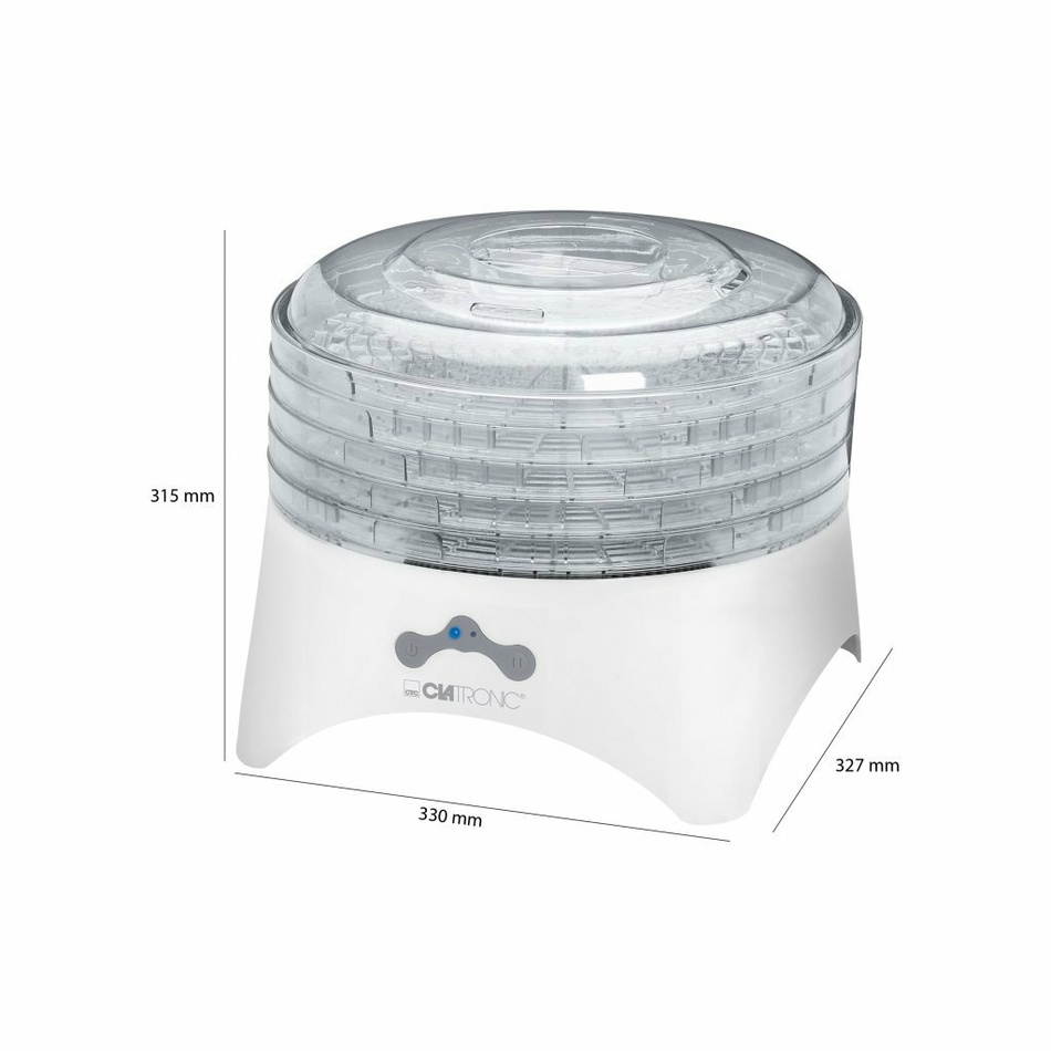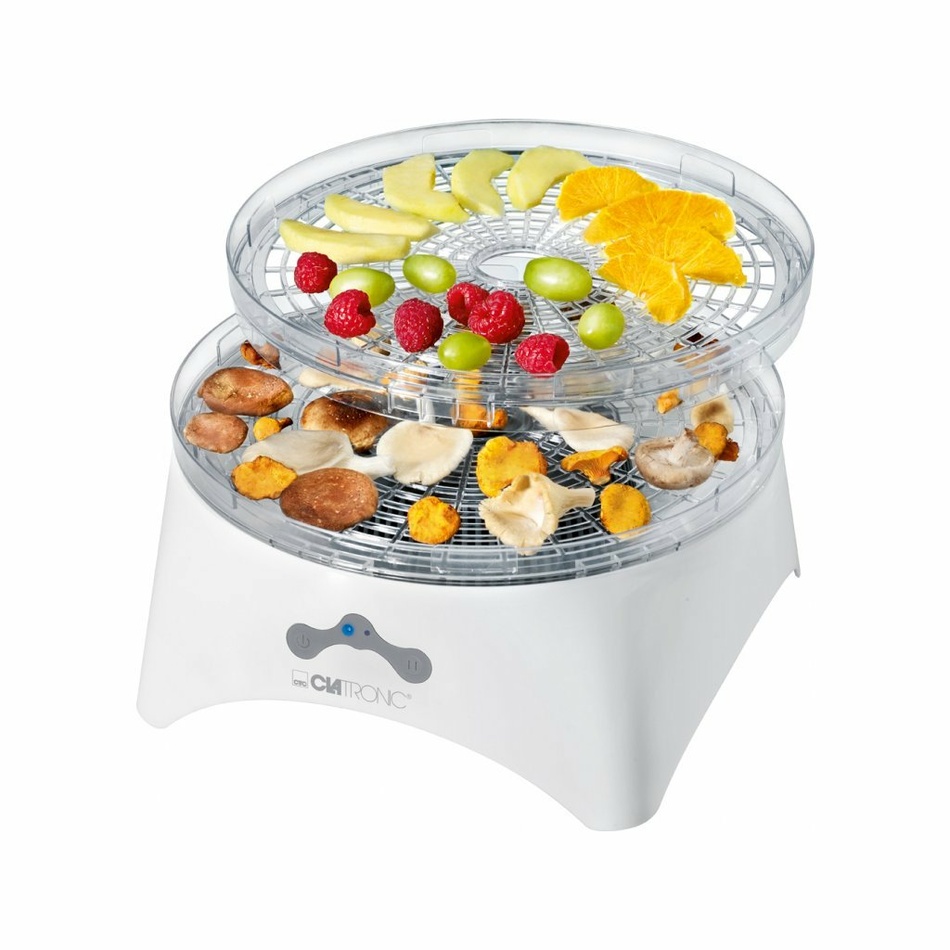 Sušička ovocia a zeleniny od značky Clatronic s 5 veľkými, transparentnými a stolovateľnými sitami. 2 stupne nastavenia teploty – nižší, vyšší. Vďaka cirkulačnému ventilátoru s obehovou funkciou sa potraviny sušia rovnomerne a nie je potrebné sitá medzi sebou prehadzovať. Na sušenie je vhodná zelenina, ovocie, mäso, bylinky a mnoho ďalšieho. Vysušené potraviny zostávajú bohaté na esenciálne minerály.Disponuje funkciou automatického vypnutia a ochranou proti prehriatiu. Variabilné využitie až 5 veľkých, transparentných a stohovateľných plat (ľahké čistenie). Cirkulačný ventilátor s obehovou funkciou. Automatické vypnutie . Ochrana proti prehriatiu. Napájanie: 230 V, 50Hz. Príkon: 300 W.