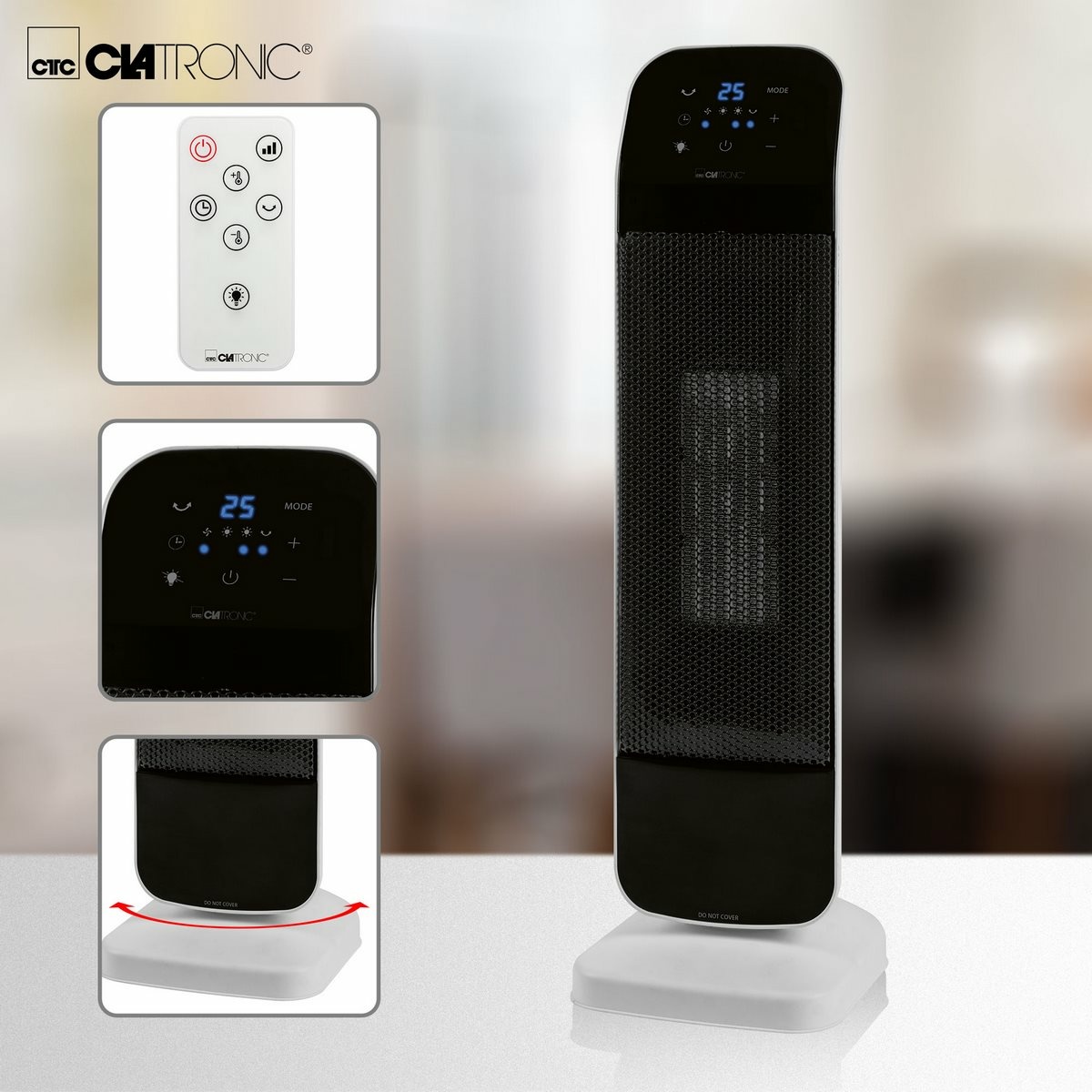 Vysoko kvalitný PTC keramický teplovzdušný ventilátor pre zdravé, bezpečné, tiché a efektívne vykurovanie miestnosti. Vďaka filtrom čistí vzduch a zachytáva častice, ktoré vytvárajú podmienky na tvorbu prachu.Základom je keramické výhrevné teleso, ktoré dokáže vyvinúť výkon až 2 000 W. Na dotykovom ovládacom paneli je možné nastaviť izbovú teplotu v rozmedzí od 15 do 35 °C. O stave informuje LED displej. Nastaviť možno tiež 12-hodinový časovač a režim spánku (stmievací displej). Funkcia oscilácie je vhodná na rovnomerné rozdelenie tepla po miestnosti. Teplovzdušný ventilátor je možné tiež použiť ako klasický ventilátor bez ohrevu.Súčasťou balenia je diaľkové ovládanie vrátane batérií. Pre ľahký transport je ventilátor vybavený rukoväťou. Stojan je dostatočne zaťažený, aby bol celý ventilátor stabilný. Zároveň je na ňom spínač, ktorý povoľuje prevádzku ventilátora. Pokiaľ ventilátor nie je na podložke, nie je možné, aby bol zapnutý. To využijete napríklad v prípade, že sa kvôli nechcenému pohybu prevráti. Vďaka ochrane proti prehriatiu je zaručená vysoká bezpečnosť. Napájanie je 220-240 V, 50/60 Hz.