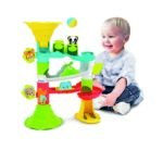Hračka stimuluje rozvoj manuálnych zručností, rozpoznávanie vzťahov medzi príčinou a následkom aj vizuálne vnímanie. Dráha je vyrobená z pevného, farebného plastu a ľahko sa zostavuje. Sada obsahuje 2 guľôčky a nálepky na ozdobenie dráhy.
