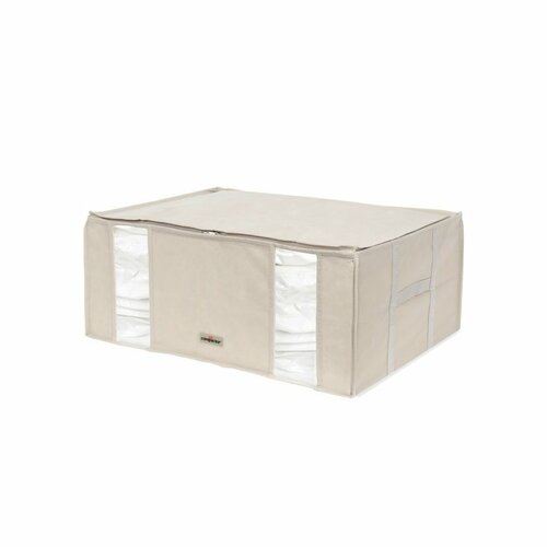 3D kompresný vak je vyrobený z polyméru s tvarovou pamäťou. Po opätovnom vpustení vzduchu sa vráti do pôvodného tvaru. Navyše sa jedná o materiál, ktorý nemení textilné vlákno. To znamená, že ak do vreca vložíte vyprané a vyžehlené oblečenie (čo odporúčame), v rovnakom stave ho po dekopresii opäť vyberiete.Ako skladovanie oblečenie v boxe Compactor Life funguje? Lôžkoviny alebo sezónne oblečenie jednoducho vložte do vreca a uzavrite ho pomocou plastového zipsu. Následne použite hubicu vysávača a kompresným otvorom vysajte z vreca vzduch. Otvor je kompatibilný s väčšinou vysávačov na trhu. Po vysatí vzduchu sa vrece zmenší tak, aby krásne pasovalo do úložného boxu. Pre lepšie zaistenie môžete použiť všité pracky. Potom už box len uzavrite zipsom a uložte do skrine, na pôdu alebo do šatne. Box má na boku praktickú úchytku na prenášanie. Orientáciu vo vnútri boxu vám uľahčia dve priehľadné okienka na jeho prednej strane.