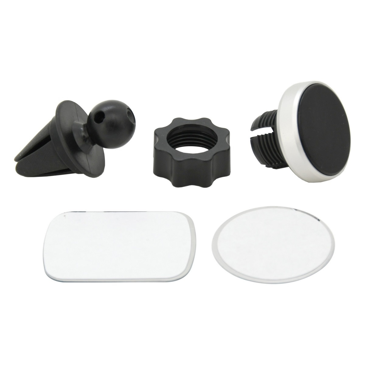 ento univerzálny magnetický držiak telefónu sa uchytáva do mriežky ventilácie automobilu. Telo je opatrené kĺbom s aretačným prstencom, vďaka ktorému je možné držiakom otáčať a nastaviť tak jednoducho ľubovoľný uhol. K držiaku sú priložené magnetické samolepky, ktoré sa umiestnia na zadnú časť telefónu, pre zaistenie okamžitého uchytenia k držiaku.