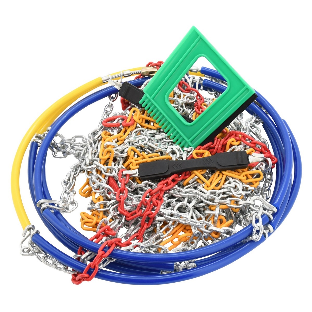 Snehové reťaze patria medzi základnú výbavu auta. Reťazová sieť je usporiadaná do tvaru „X“ pre vysokú ovládateľnosť vozidla a tým posádke vozidla zabezpečuje pohodlnú a hlavne bezpečnú jazdu na zasnežených cestách aj poľných cestách. Prierez jednotlivých článkov reťaze je čo najoptimálnejšie prispôsobený a zaisťuje plynulý záber kolies. Reťaz je zhotovená z akostnej legovanej ocele zaisťujúcej dlhú životnosť.Praktické balenie obsahuje pár reťazí s jednoduchou a rýchlou montážou, návod a darček v podobe trojstrannej škrabky na okná.Technické parametre: