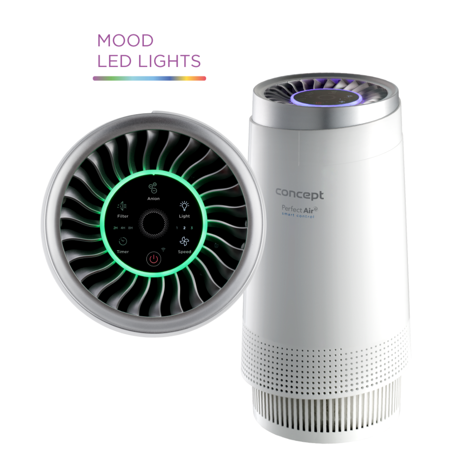 Čistička vzduchu Smart Concept CA1010 pomôže odstrániť škodliviny, ktoré v domácnostiach vznikajú, alebo tam prenikajú z vonkajšieho prostredia. Disponuje 3 rýchlosťami čistenia vzduchu a výkonom 130 m3/hodina.Je tichá, ľahko prenositeľná a vhodná do miestností o veľkosti až 20 m2. Moderný dizajn podčiarkuje atraktívne LED podsvietenie s automatickým prechodom farieb alebo možnosťou fixácie vašej obľúbenej.Čističku môžete ovládať pomocou dotykového panelu na tele spotrebiča alebo cez mobilnú aplikáciu Concept Home. Na diaľku ju spustíte alebo vypnete, skontrolujete aktuálny stav ovzdušia v miestnosti alebo upravíte rýchlosť čistenia. V aplikácii môžete tiež vytvoriť týždenný plán, v ktorom si zvolíte konkrétne dni aj časy, kedy chcete mať čističku v prevádzke.Prístroj disponuje tromi stupňami filtrácie vzduchu:Karbónový filter pohlcuje jedovaté, dusivé a ďalšie zapáchajúce plyny a výpary rôzneho pôvodu, ako napr. formaldehyd, benzén alebo cigaretový dym.HEPA filter 13 zachytí častice od veľkosti 0,1 mikrometra s účinnosťou 99,9 % (prach, peľ, dym, baktérie, vírusy, alergény, spóry plesní a pod.).Ionizátor zvyšuje množstvo záporne nabitých iónov vo vzduchu (tzv. vzdušných vitamínov), ktoré zlepšujú celkovú kvalitu ovzdušia.