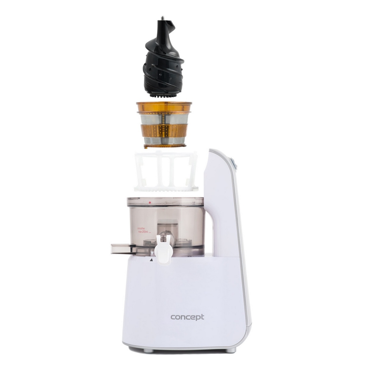 So šnekovým odšťavovačom 3 v 1 LO7066 pripravíte čerstvú šťavu, smoothie aj studený dezert. Veľký plniaci otvor pojme aj celé plody. Vďaka dvojfázovému procesu odšťavovania získate maximum šťavy a minimum odpadu.Chcete mať zdravú čerstvú šťavu denne na svojom stole? Tak práve pre vás je tu nový lis na ovocie a zeleninu od Conceptu. Vďaka svojmu 75 mm veľkému plniacemu otvoru ušetríte veľa času.Lis na ovocie a zeleninu LO7066 sa môže pochváliť označením ŠPECIALISTA NA RÍBEZLE – 1,5 kg tejto vitamíny nabitej suroviny spracuje iba za 2 minúty. Vďaka 2-fázovému procesu odšťavovania je ovocie či zelenina najprv nadrvená a potom dochádza k lisovaniu. Výsledkom je maximum čerstvej šťavy a minimum odpadu.V odšťavovači LO7066 sa v skutočnosti ukrývajú hneď traja vďační pomocníci. Stačí sa rozhodnúť, v akej podobe svojmu telu doprajete potrebnú dávku vitamínov, a podľa toho zvoliť správne sitko.Chytro vymyslený ANTI DRIP vám umožní výmenu nádoby na šťavu bez toho, aby ste si zašpinili kuchynskú linku, alebo museli prestať odšťavovať. Vďaka jednoduchej rozoberateľnosti a prispôsobenej kefke vás bude baviť aj rýchle upratovanie po lisovaní. Pre zaistenie maximálneho komfortu pri samotnom odšťavovaní je prístroj vybavený protišmykovými nožičkami, ktoré zaistia dokonalú stabilitu pri práci.Vlastnosti: