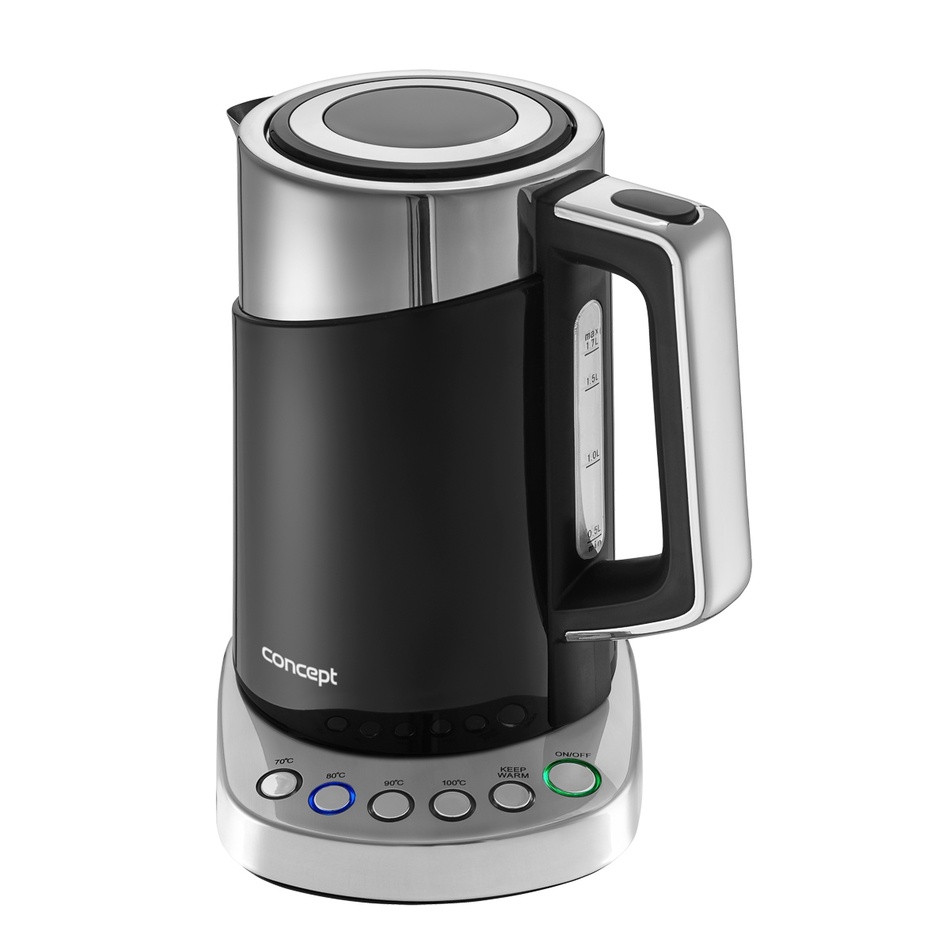 Kanvica Concept RK3171 je dokonalým spojením elegantného lesklého nerezu a čisto čierneho povrchu Cool Touch v inovatívnom dizajne. Vďaka tomuto elegantnému čiernemu povrchu máte istotu, že sa o povrch kanvice nespálite.Jednou z hlavných výhod kanvice je funkcia regulovania teploty: môžete si vybrať 70 °C, 80 °C, 90 °C alebo 100 °C. Kanvica je tiež vybavená funkciou KEEP WARM – udržiavanie teploty. Horúca voda pre vás bude pripravená kedykoľvek.Trojnásobný bezpečnostný systém: