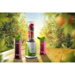 Zmixujeme všetko od lahodného smoothie, ktoré si môžete vziať so sebou kamkoľvek, po ľadovú kávičku, ktorú si môžete vychutnať na terase alebo pri bazéne. Hlad alebo smäd vás už rozhodne nezaskočí. So smoothie maker SM3365 budete mať svoju porciu zdravia stále pri sebe. Či už v práci, v škole, v posilňovni alebo kdekoľvek inde. Vďaka skrutkovaciemu uzáveru sa vám smoothie nikam nevyleje, ani do kabelky.V základnej výbave nájdete dve nádoby s objemom 600 ml a jednu menšiu s objemom 400 ml. Tritanová fľašu neobsahuje BPA a slúži priamo k mixovaniu. Po mixovaní jednoducho vymeníte nože za viečko a môžete vyraziť. Viečko je navyše vybavené pútkom a špeciálnym dvojitým tesnením.Technické parametre a špecifikácie: