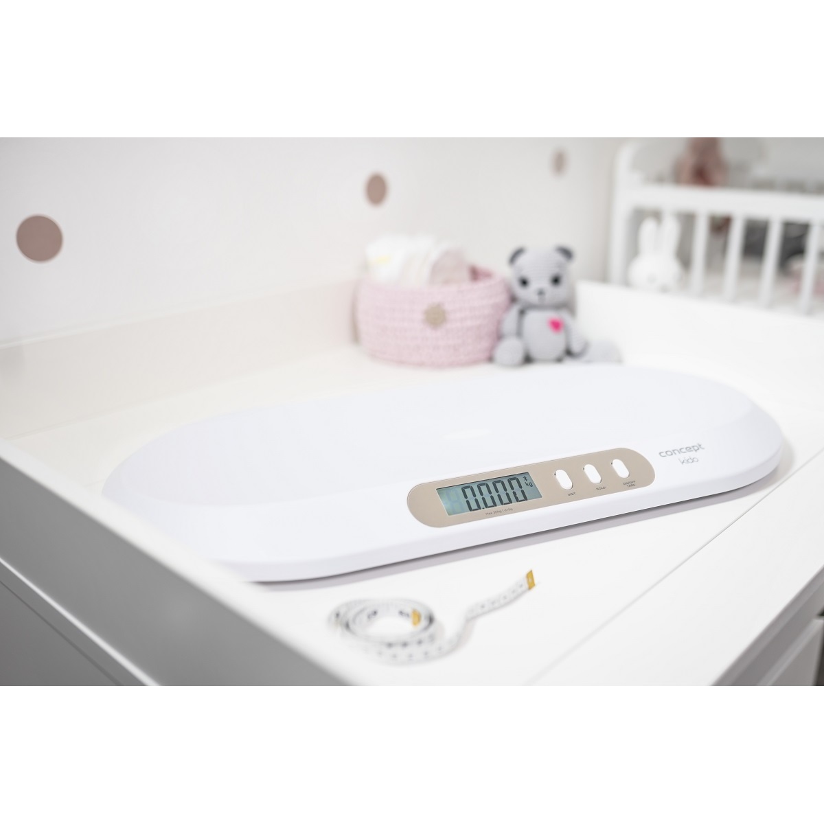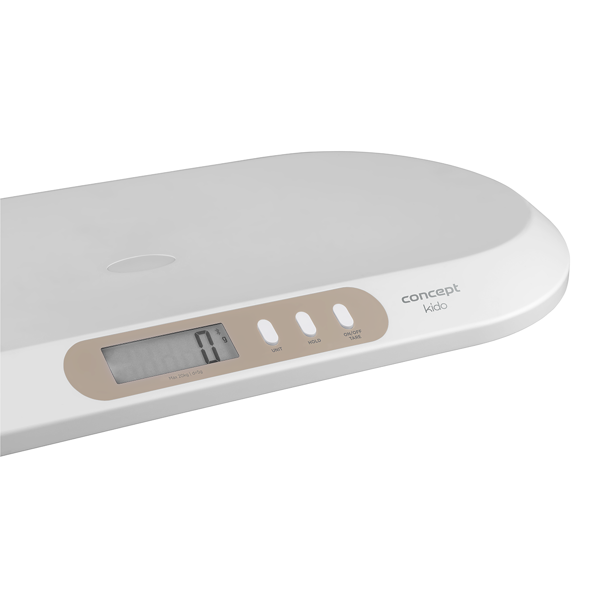 Dojčenská váha s aplikáciou Concept VD4000 KIDO vám umožní postrážiť hmotnosť vášho bábätka v pohodlí domova. Kedykoľvek si tak môžete skontrolovať, či vaše dieťa správne priberá a uistiť sa o dostatočnej výživnosti materského mlieka. Ponúka veľmi presné váženie s nosnosťou 20 kg, takže ju využijete nielen pre novorodencov, ale aj pre väčšie deti. Nameranú hmotnosť môžete sledovať na prehľadnom digitálnom displeji.Veľkou prednosťou dojčenskej váhy Concept VD4000 KIDO je múdra funkcia TARE, ktorá umožňuje odčítať veci vážené súčasne s bábätkom. Stačí odvážiť napr. uterák, oblečenie alebo detskú plienku, ktorú bude mať dieťa počas váženia na sebe. Bábätko teda nemusíte vystavovať žiadnemu stresu, ktoré by mohlo vyvolať aj obyčajné odobratie obľúbenej hračky. Váha automaticky vypočíta rozdiel a zobrazí iba reálnu hmotnosť bábätka. Váženie sa tak pre vás aj pre vaše dieťa stane zaiste príjemnejšie a pohodlnejšie.Je vaše bábätko plné energie, a aj na váhe býva často nepokojné? Nič sa nedeje. Dojčenská váha Concept VD4000 KIDO je pripravená na všetky situácie. Stačí stlačiť funkciu HOLD, vďaka ktorej ľahko a rýchlo zvážite každého neposedného raráška.Dojčenská váha je vybavená funkciou automatického vypnutia, ktorá predlžuje životnosť vložených batérií. Ak ju zabudnete vypnúť, za 30 sekúnd nečinnosti sa automaticky vypne sama. Váha je vybavená indikátorom nízkeho stavu batérie a signalizáciou preťaženia.