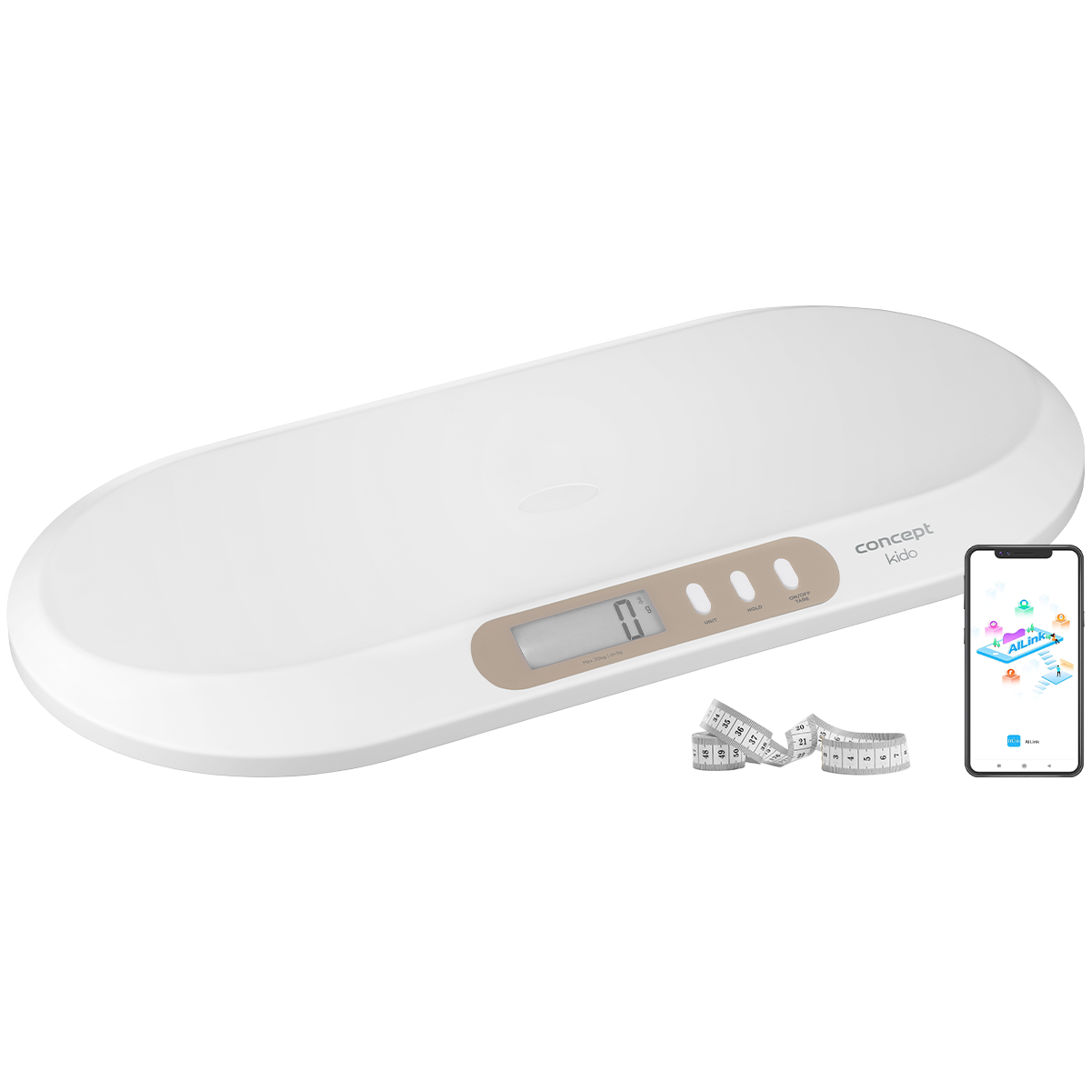 Dojčenskú váhu Concept VD4000 KIDO môžete prepojiť cez Bluetooth s mobilnou aplikáciou Ailink, ktorá vám pomôže uchovávať namerané hodnoty. Aktuálnu váhu dokáže porovnať s poslednými nameranými hodnotami a poskytnúť okamžitý prehľad o vývoji vášho dieťaťa. Tieto hodnoty budú užitočné nielen pre vašu potrebu, ale aj pre pediatra. Aplikácia pojme údaje až 8 užívateľov. Váhu teda môžete zdieľať v rámci celej rodiny a sledovať vývoj vlastných detí aj ostatných ratolestí svojich blízkych. Okrem váhy, ktorá sa do aplikácie prepíše automaticky, môžete sledovať aj výšku bábätka a obvod hlavy. Tieto údaje je však nutné zadať ručne. Na zistenie hodnôt môžete využiť meter, ktorý je súčasťou balenia.
