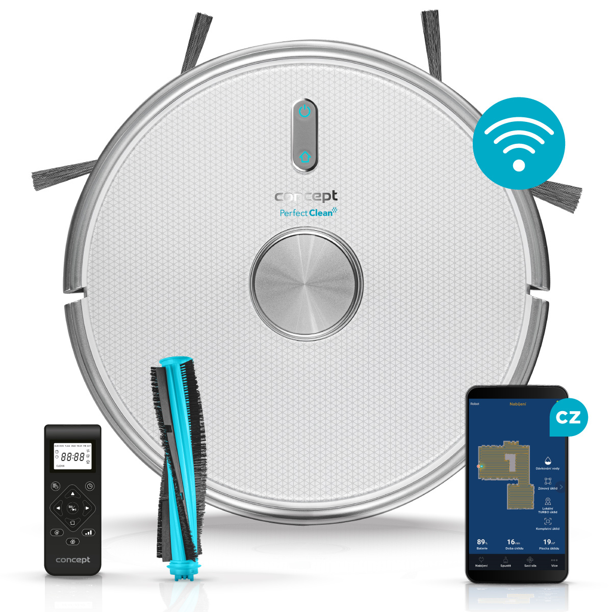 Robotický vysávač Concept VR3105 s laserovou navigáciou sa skvele orientuje v priestore a vďaka veľkým kolesám prekoná prekážky do výšky až 1,8 cm. Je vybavený zásobníkom na aróma tabletu a vyniká vysokou sacou silou s výdržou až 130 minút na jedno nabitie.Vlastnosti a špecifikácia: