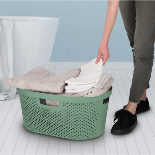 Kôš na bielizeň INFINITY z recyklovaného plastu, bude praktickým pomocníkom každej gazdinky pri praní a sušení. Vďaka zaujímavému dizajnu pripomínajúcemu ratan bude tiež pekným doplnkom každej kúpeľne. Tvarované úchyty umožnia ľahké prenášanie koša podľa potreby. Vďaka drobným otvorom po celej ploche koša je zaistená dostatočná vetrateľnosť. Použitý materiál zaistí ľahkú údržbu.