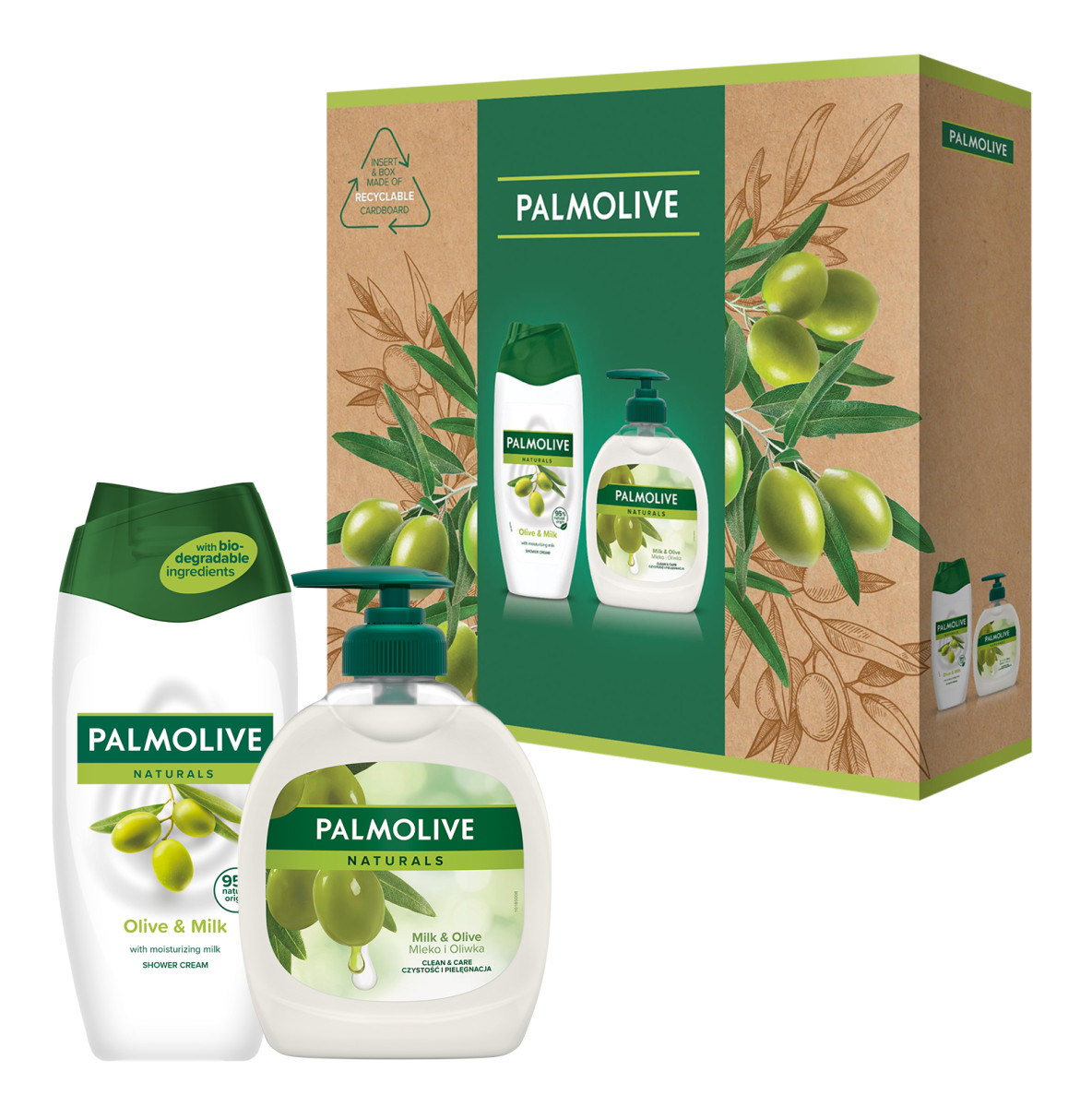 Darčeková sada Palmolive Naturals Olive Darčeková sada Palmolive Naturals Olive s vôňou olív. Darčeková sada Palmolive Naturals Olive pre jemnú pokožku.Sada s vôňou olív obsahuje: 1. sprchový gél Palmolive Naturals Olive Milk 250 ml so 100% prírodnými výťažkami z olív a aloe vera, obohatené aj o vitamínový komplex. Jeho bohaté zloženie pomáha hydratovať pokožku 2. tekuté mydlo Palmolive Naturals Olive Milk 300 ml zvláčňuje pokožku a zanecháva príjemný pocit hodvábnej jemnosti.Darčeková sada Palmolive Naturals OliveVôňa olívPre jemnú a vláčnu pokožku