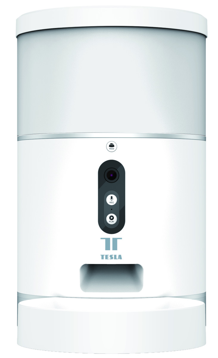 Z domácich maznáčikov sú to prevažne psy, ktoré potrebujú dodržiavať stravovací režim a kŕmne dávky. Dávkovač granúl Tesla Smart s HD kamerou to všetko zvládne urobiť za vás, ak práve nie ste doma a nastal čas pravidelného kŕmenia. Nádoba na granule je vyberateľná a s kapacitou 4 litre aj dostatočne veľká, aby v nej krmivo vydržalo niekoľko dní. Je vhodná pre akékoľvek suché krmivo s veľkosťou zrna od 2 – 10 mm. Nádoba je z časti priehľadná pre ľahkú kontrolu množstva. Kŕmenie je možné jednoducho naplánovať pomocou aplikácie vo vašom smartfóne na niekoľko rôznych časov a s rôznou veľkosťou porcií. Rovnako tak môžete vydať porciu kŕmenia aj manuálne stlačením tlačidla na tele dávkovača. Záložná batéria umožňuje fungovanie dávkovača aj pri výpadku prúdu. Batéria zabezpečí neprerušenú prevádzku po dobu niekoľkých dní. Dávkovač je vybavený HD kamerou s nočným videním a obojstranným systémom (mikrofón a reproduktor). Vďaka tomu uvidíte aj počujete, čo váš maznáčik práve robí. Rozmery: 19,3 x 19,3 x 31,1 cm.Šikovný dávkovač kŕmenia pre psov a mačkyHD kamera s nočným videnímObojstranný systém – mikrofón a reproduktorObjem nádoby 4 lDávkovanie: až 10 porcií po 10 g / porciaPriemer granúl 2 – 10 mmPripojenie WiFiZdroj napájania DC 5 V, 1A, 3 x LR20 (D) batériePrevádzková teplota -10 ° C až 10 ° CAplikácia Tesla Smart pre Android a iOSAplikácia v českom jazyku