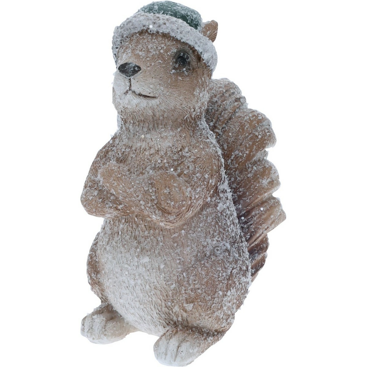 Krásna dekorácia roztomilej veveričky so zelenou čiapkou urobí radosť vám aj vašim deťom. Má na sebe umelý sneh, skvele tak doplní vianočnú výzdobu. Ozdobte si s ňou poličku v obývacej izbe alebo ju postavte deťom do izbičky.