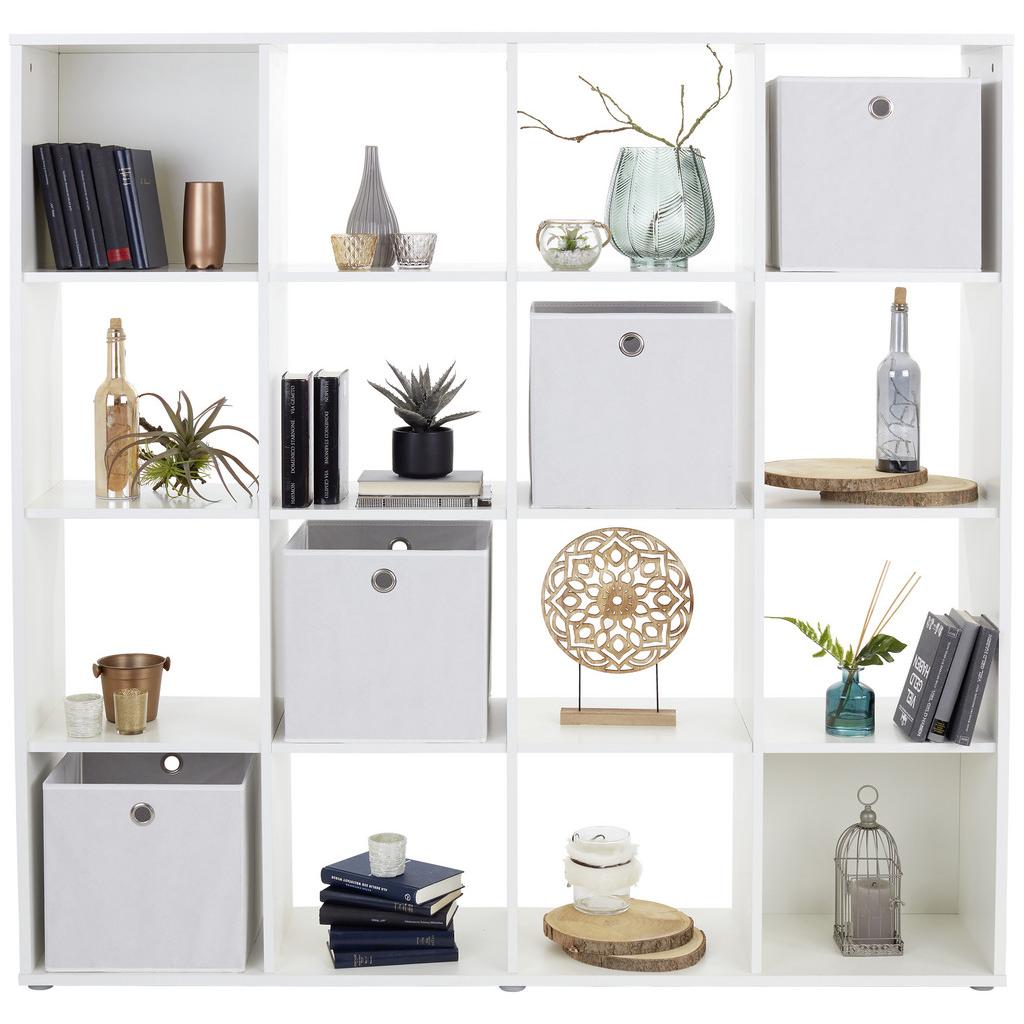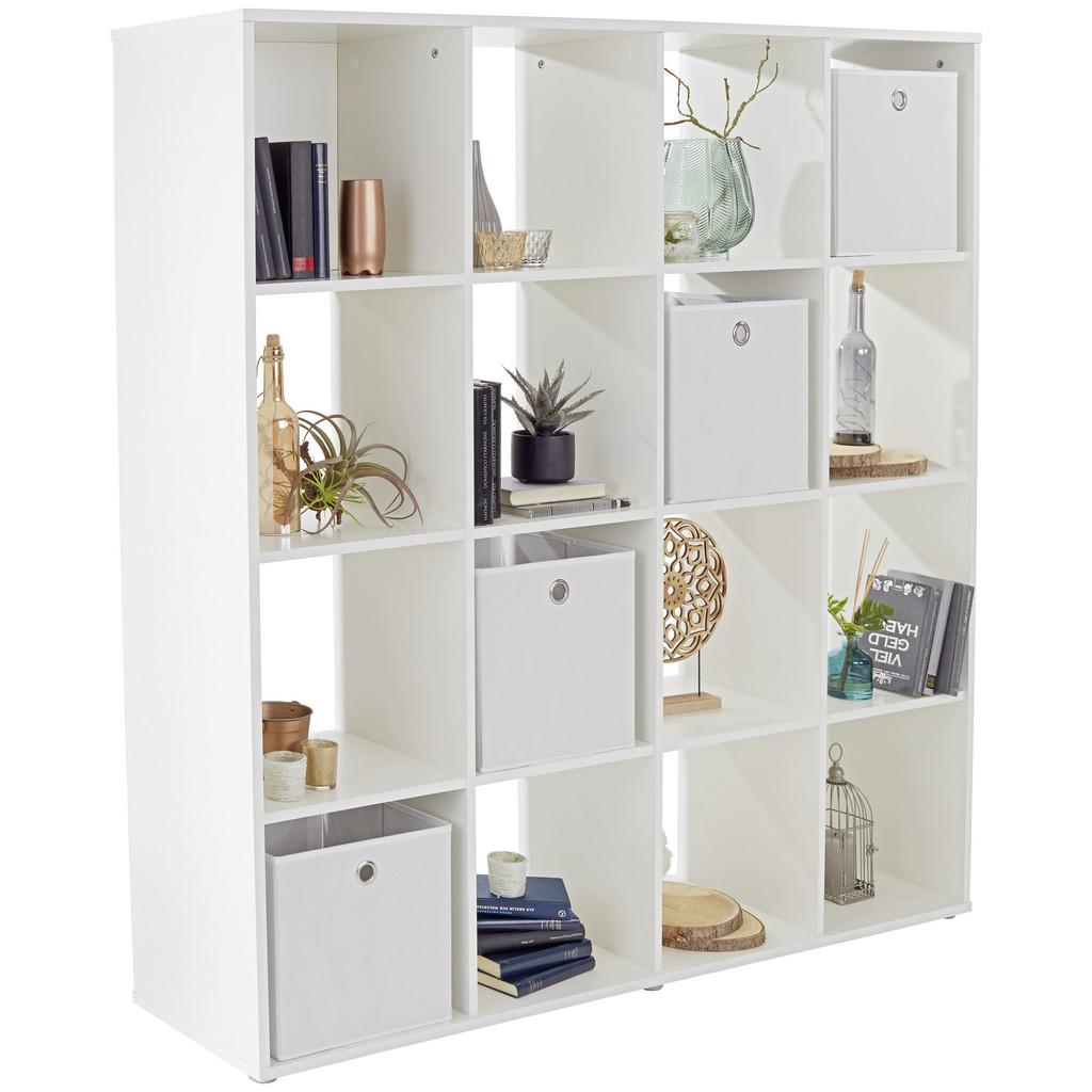 Veľmi pekný regál v modernom prevedení s veľkým úložným priestorom. Môžete ho využiť ako deliacu stenu alebo knižnicu – jednoduchý dizajn v bielej farbe vytvára harmonický celkový obraz. Regál s rozmermi cca. 158 x 158 x 34 cm (š/v/h) pozostáva zo 16 priehradok s rôznymi možnosťami využitia – či už na dekorácie alebo odkladanie kníh alebo iných predmetov. Regál BERNI vás presvedčí svojou všestrannosťou a praktickosťou zároveň!