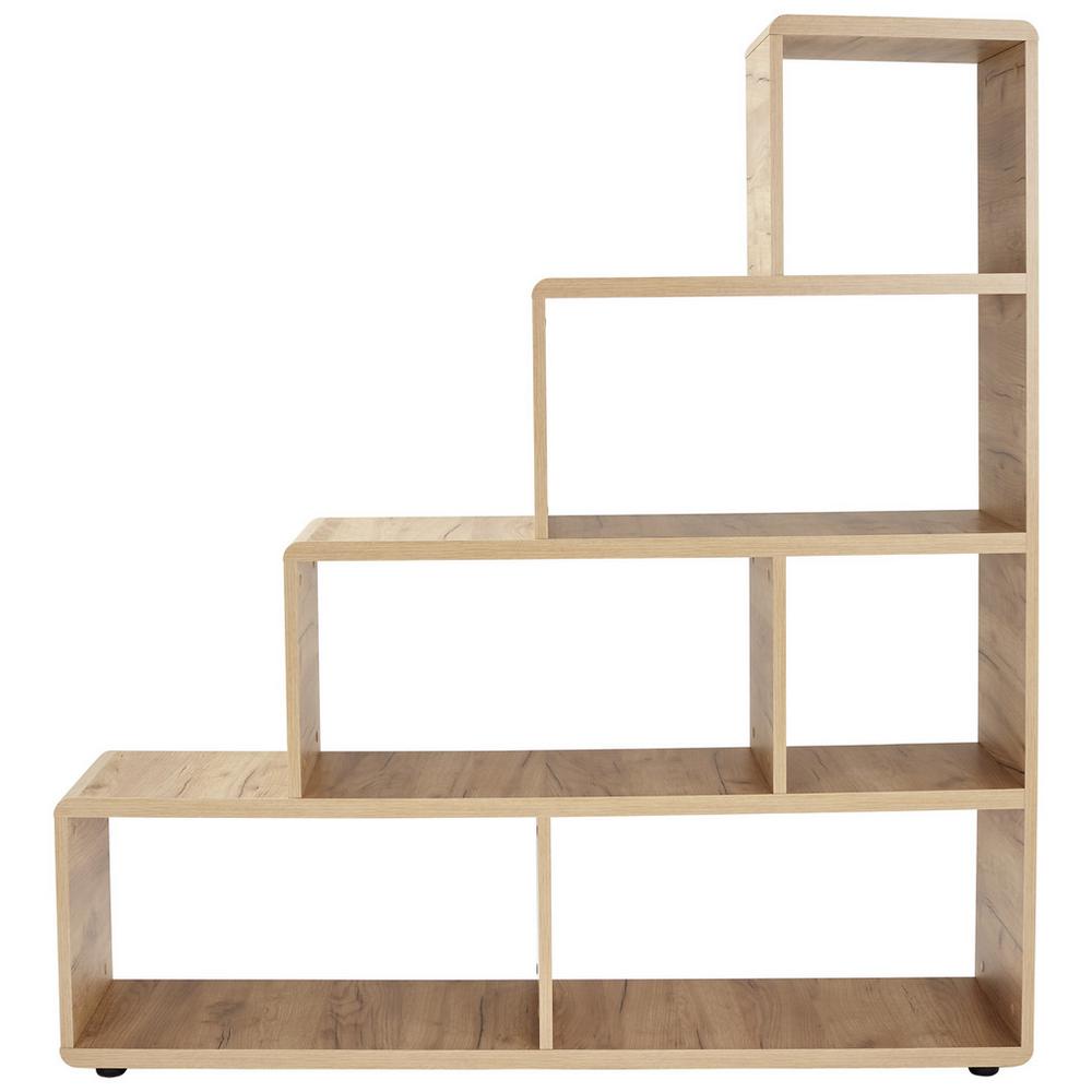 Regál FONTANA FTR03 so stupňovitým tvarom a zaoblenými rohmi je dokonalým doplnkom vašej domácej kancelárie alebo obývacej izby a zaujme svojím povrchom v dubovom dekore. Toto prevedenie vyžaruje teplo a zároveň moderný dotyk. S rozmermi približne 138,5 x 148 x 35 cm (Š x V x H) a 6 otvorenými priehradkami ponúkatento regál dostatok priestoru pre knihy alebo ozdobné predmety.Objavte ešte viac nábytku zo série FONTANA! Zmeňte svoj obytný priestoralebo vytvorte uvoľnenú pracovnú atmosféru vo vašej domácej kancelárii! Najdôležitejšie informácie: Rozmery: cca 138,5 x 148 x 35 cm (Š/V/H) Materiál: na báze dreva Farba: dekor dub Melamínový povrch Zaoblené rohy Počet otvorených políc: 6 Vhodné ako deliaca ste