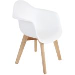 Tento výrobok je k dispozícii iba ONLINE. Detská stolička od značky OMBRA je útulným spoločníkom v detskej izbe. Či už s dieťaťom maľujete, tvoríte alebo sa hráte, dieťa sedí stabilne a bezpečne. Biele sedadlo tvorí plast, ktorý je možné ľahko utrieť vlhčenou utierkou, takže malé nehody s pastelkami alebo šťavou nezanechajú škvrny. Štyri nohy detskej stoličky sú vyrobené z bukového dreva. Stolička môže byť zaťažená do hmotnosti približne 60 kg.