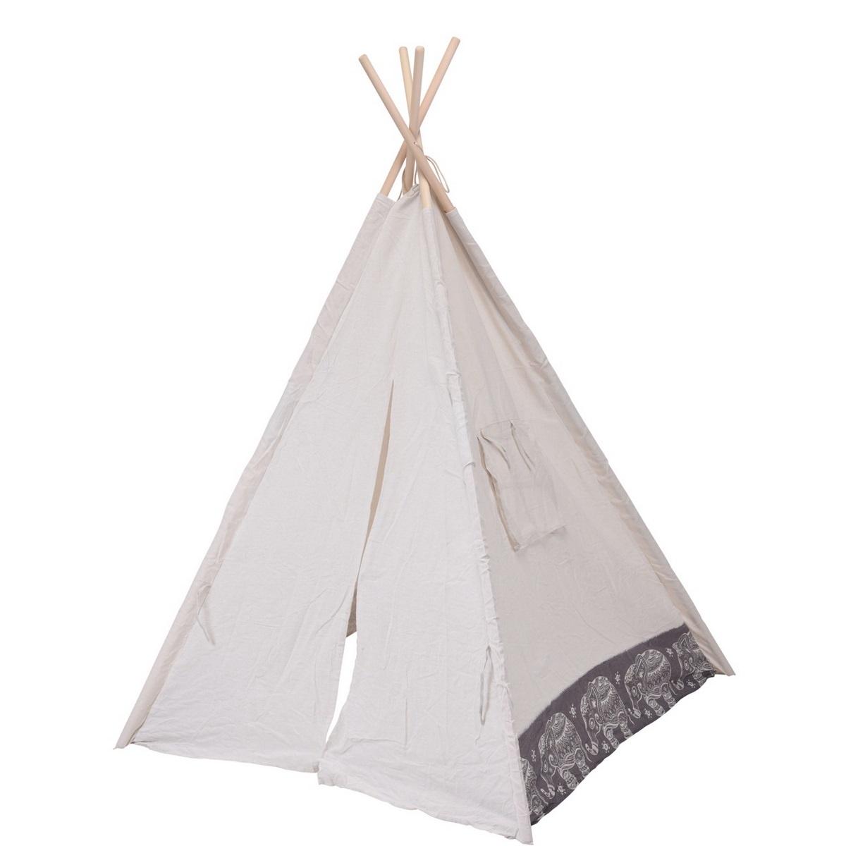 Obľúbenou detskou hrou je hra na indiánov. Kúpte svojim deťom toto teepee, ktoré je zdobené prekrásnym motívom slona. Na jednej zo strán je malé okienko s vyhrňovacou roletkou.