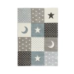 S týmto detským kobercom v modrej, sivej a bielej farbe prinesiete do detskej izby dobrú náladu. Cca 100 x 150 cm (Š x D) veľký koberec, vyrobený zo 100 % polypropylénu, boduje príjemným dizajnom vhodným pre deti, a výškou vlasu približne 13 mm. Strojovo tkaný koberec je nenáročný na údržbu a vhodný na podlahové kúrenie. S ním sa detská izba stane skutočne útulnou! K dispozícii aj v ružovej farbe.