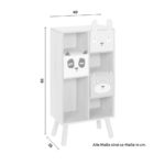 Tento výrobok je k dispozícii IBA ONLINE. S týmto detským regálom s veselými zvieratkami prinesiete pohodu a dobrú náladu do detskej izby. Hračky a detské knihy tu nájdu optimálny priestor a budú úhľadne uložené. Regál bol vyrobený z pravého dreva a MDF dosiek, v kombinácii farieb svetlohnedej, ružovej, modrej a čierno-bielej, a s rozmermi cca 40 x 83 x 25 cm (Š x V x H). Obsahuje štyri otvorené priečinky a tri zásuvky, ktoré sa otvárajú hravo, pomocou uší zvieratiek – pandy, zajačika a macka. Cylindrické nohy dotvárajú celkový dizajn a zaisťujú dobrú stabilitu – regál má maximálnu nosnosť 25 kg. Tento výrobok vlastní FSC certifikát, čo zaručuje materiál z ekologického lesného hospodárstva z udržateľného lesa. Kombinujte tento nábytok aj s inými veselými kúskami zo série LANNY! Upozornenie: Tento tovar sa nenachádza v našich predajniach. Objednať si ho môžete iba cez e-shop Möbelix alebo na požiadanie v kamenných obchodoch.