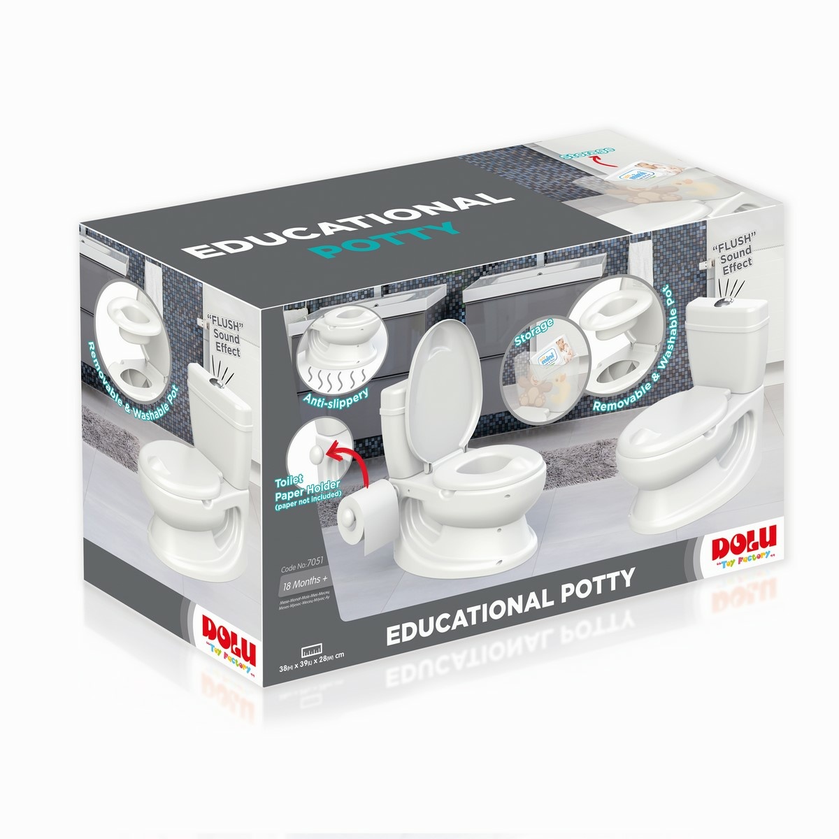 Doprajte vašim deťom komfort a zábavu zároveň. Táto verná kópia toalety pre dospelých je skvelou variantou pre najmenšie deti, ktoré už chcú chodiť na ozajstný záchod ako dospelí. Napriek tomu je základom tohto výrobku vyberateľný nočník, ktorý je umývateľný. Na bočnej strane toalety je držiak na toaletný papier (papier nie je súčasťou balenia). Na hornej časti toalety je splachovadlo, ktoré vydáva rovnaký zvuk ako pri spláchnutí.