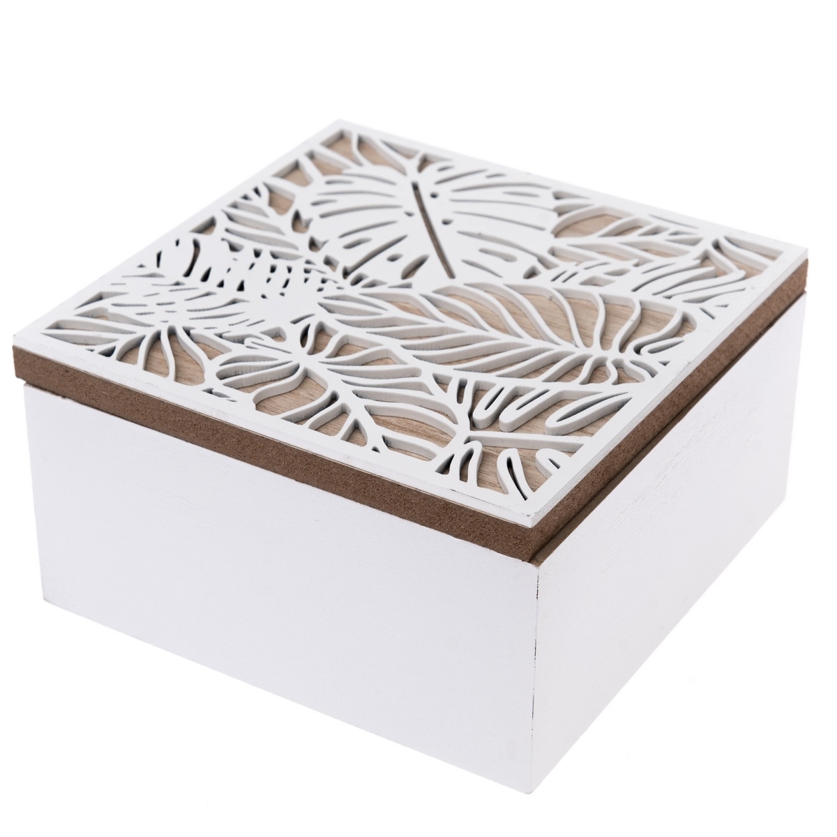 Biely variant drevenej krabičky skvele poslúži ako úložný priestor pre vaše drobnosti, šperky a iné cennosti, ktoré nechcete nechať len tak povaľovať. Vďaka dekoratívnemu viečku s motívom listov sa zároveň stane doplnkom vášho domova. Môže sa stať aj vhodnou voľbou na uschovanie darčekov, a tak svojich blízkych obdarujete dvojnásobne.