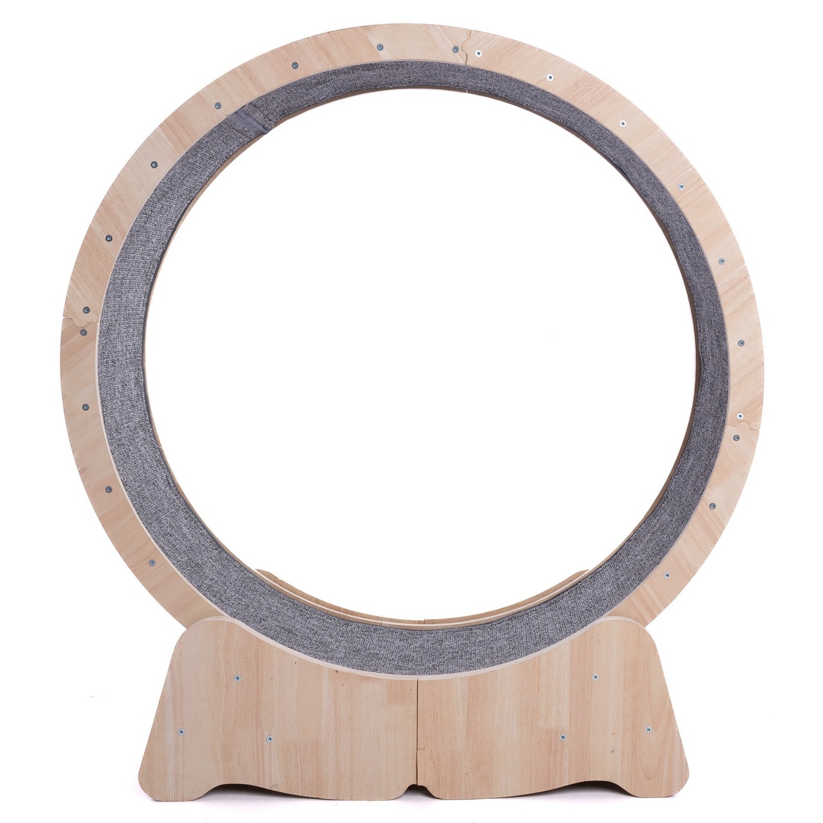 Doprajte svojim mačkám aktivitu, vďaka ktorej budú doma šťastné, zažijú veľa zábavy a budú neustále v kondícii pomocou bežeckého kolesa. Praktický okrúhly bežecký pás pre mačky je vyrobený tak, aby bol dostatočne odolný, ergonimcký a bez ostrých častí, ktoré by mohli maznáčikovi ublížiť. Vhodný pre menšie aj väčšie plemená mačiek.Pravidelné užívanie bežeckého kolesa je užitočné na vyžitie vašej mačky ale zároveň aj pre jej zdravie a fit život. Podľa odborných výskumov majú mačky, ktoré sa stretávajú s obezitou, oveľa častejšie zdravotné problémy, trpia cukrovkou, kožnými ochoreniami a osteoartritídou. Navyše je dokázané, že mačky trpiace obezitou majú kratší život. Bežecký pás vznikol na základe obrany proti obezite domácich mačiek a umožní vášmu miláčikovi nielen schudnúť, ale tiež sa postará o jeho kondíciu po dlhé roky jeho života.Športové bežecké koleso pre mačky je vyrobené z dreva a koberca sisalovej štruktúry, vďaka čomu je jeho údržba relatívne jednoduchá. Lokálne je možné drevo očistiť vlhkou handričkou či hubkou a v prípade potreby je možné vysávačom vyčistiť sisalový povrch podlahy.